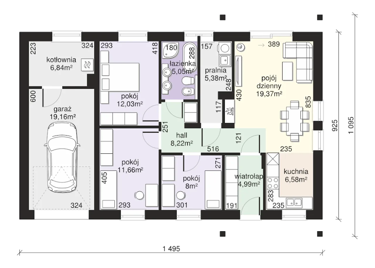 Wypełnij formularz i otrzymaj rysunki w pdf z dokładnymi wymiarami budynku i pomieszczeń (długość, szerokość, wysokość) dla projektu Dom przy Bukowej 17