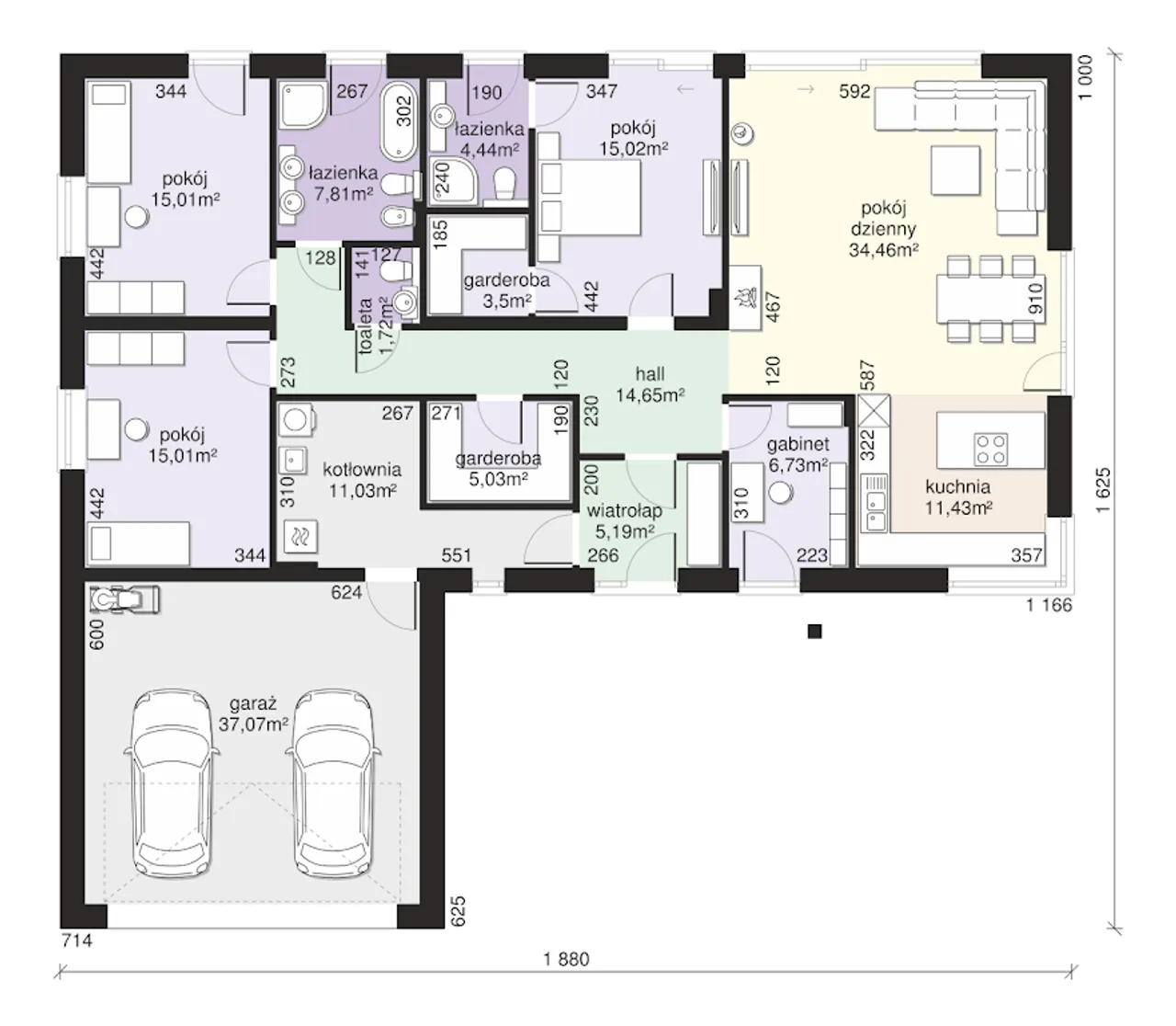 Wypełnij formularz i otrzymaj rysunki w pdf z dokładnymi wymiarami budynku i pomieszczeń (długość, szerokość, wysokość) dla projektu Dom przy Bukowej 36