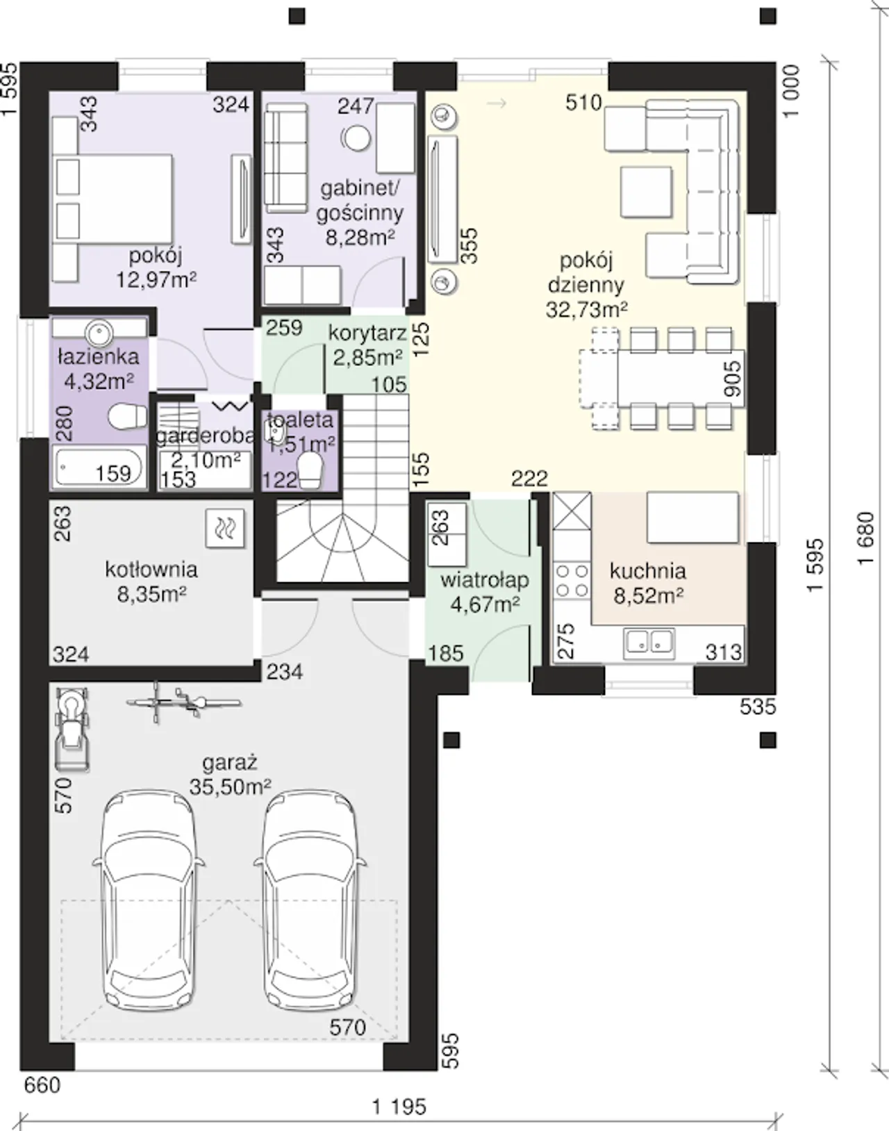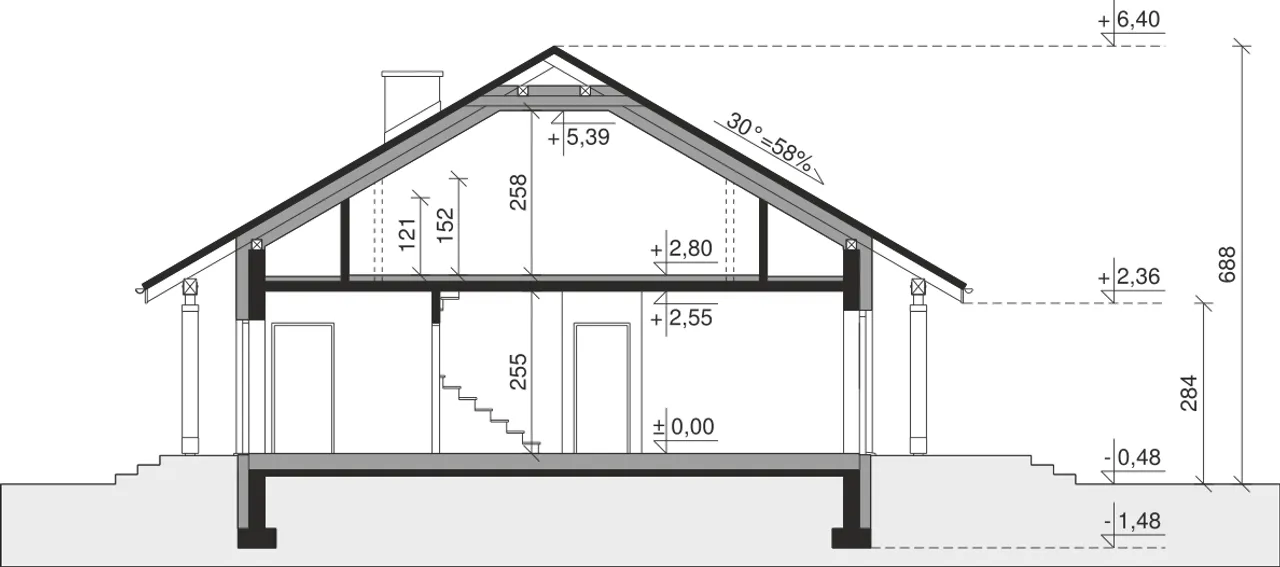 Wypełnij formularz i otrzymaj rysunki w pdf z dokładnymi wymiarami budynku i pomieszczeń (długość, szerokość, wysokość) dla projektu Dom przy Bukowej 42