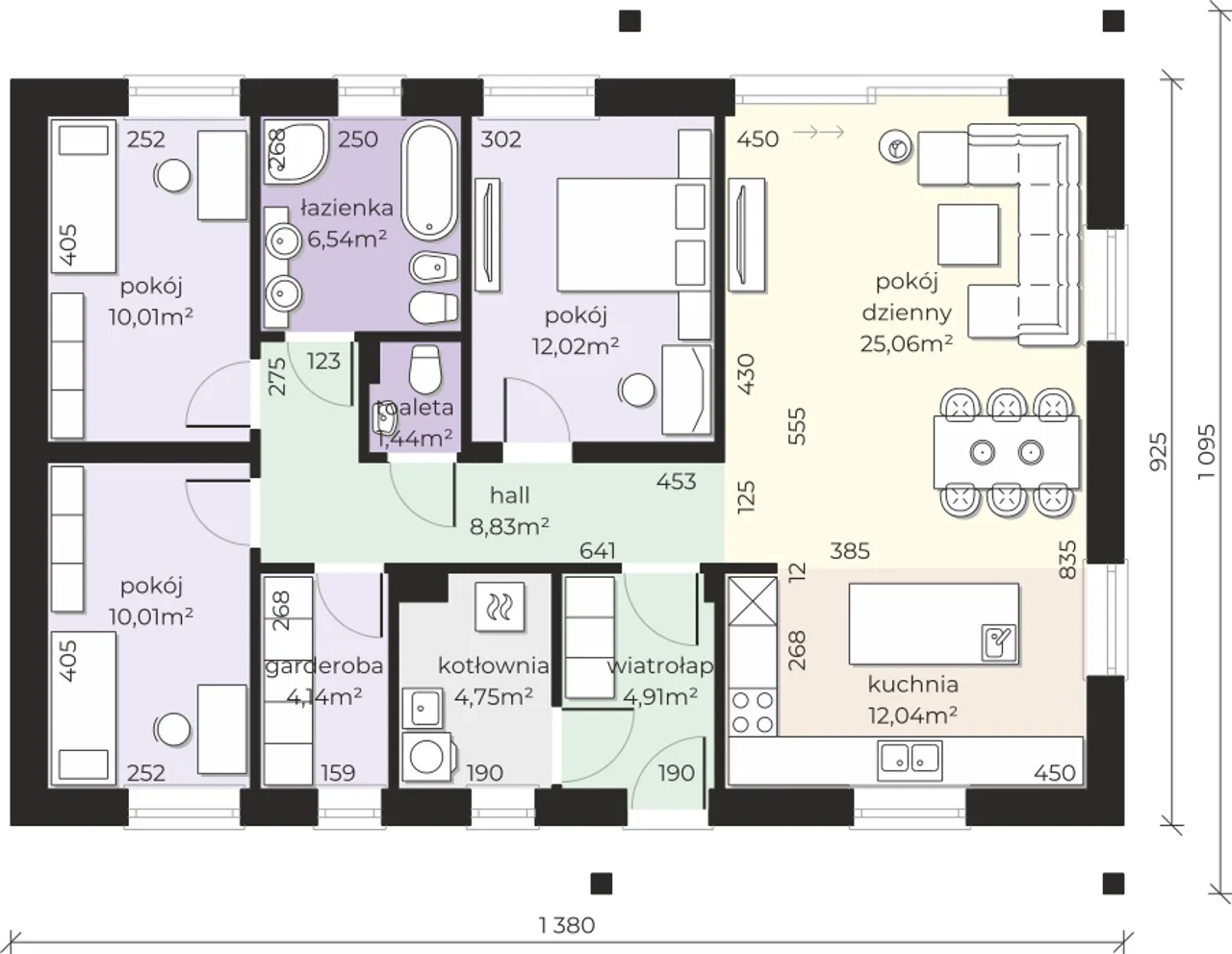 Wypełnij formularz i otrzymaj rysunki w pdf z dokładnymi wymiarami budynku i pomieszczeń (długość, szerokość, wysokość) dla projektu Dom przy Bukowej 55