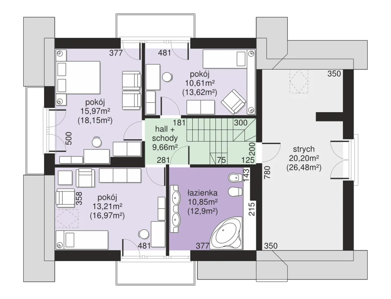 Wypełnij formularz i otrzymaj rysunki w pdf z dokładnymi wymiarami budynku i pomieszczeń (długość, szerokość, wysokość) dla projektu Dom przy Cyprysowej 14 K2