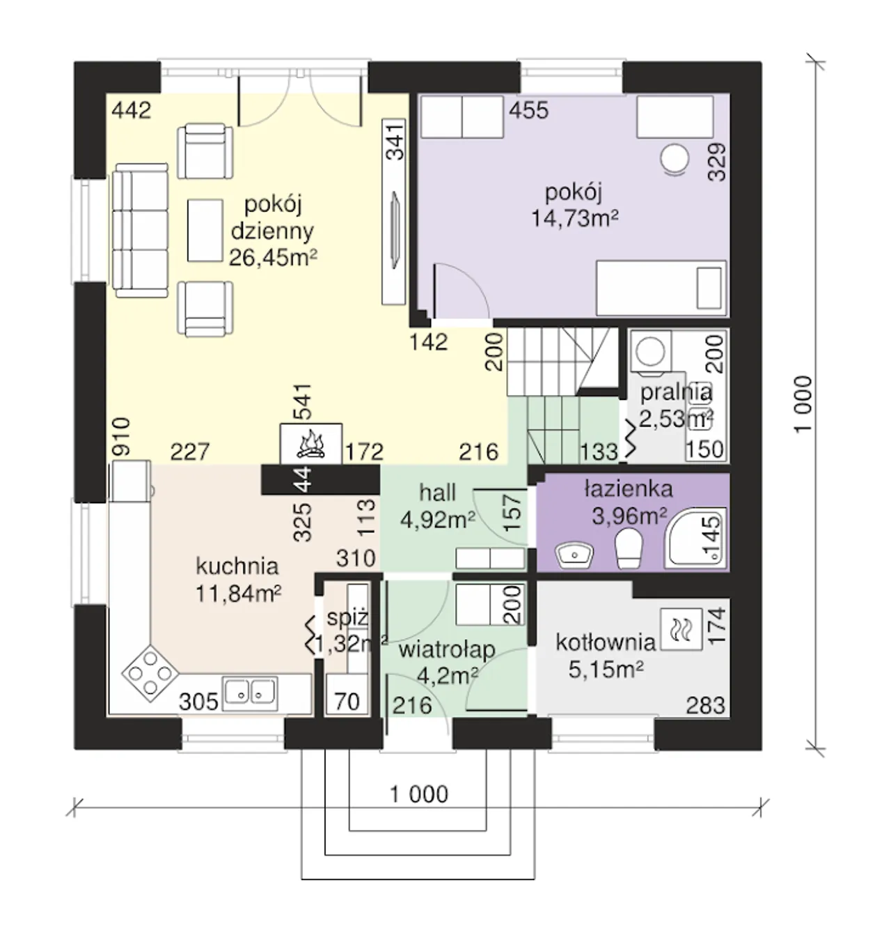 Wypełnij formularz i otrzymaj rysunki w pdf z dokładnymi wymiarami budynku i pomieszczeń (długość, szerokość, wysokość) dla projektu Dom przy Cyprysowej 42