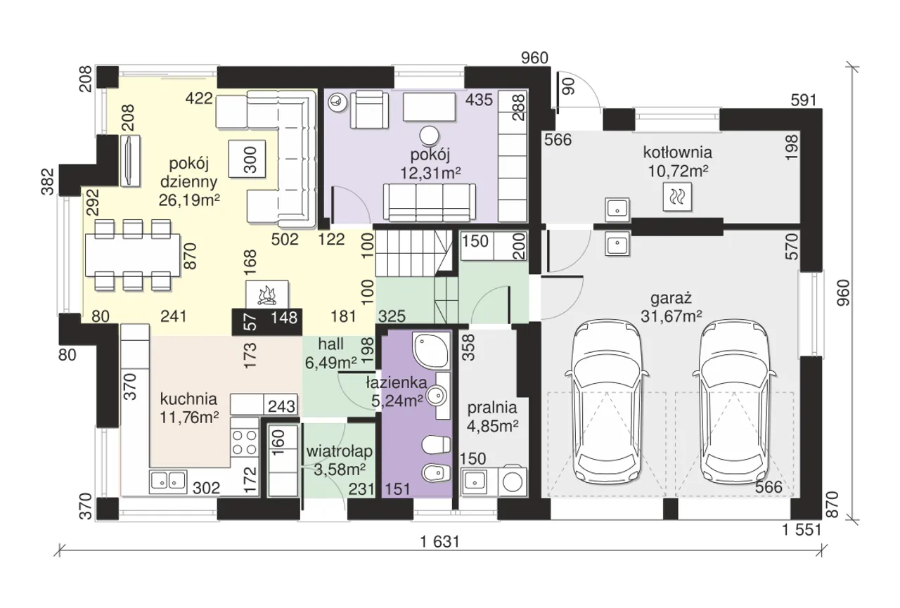 | Szerokość budynku 16.31 m |