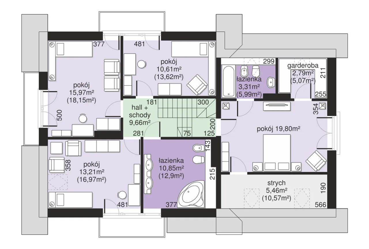 | 5. Strych | 5,46 (10,57) m² |