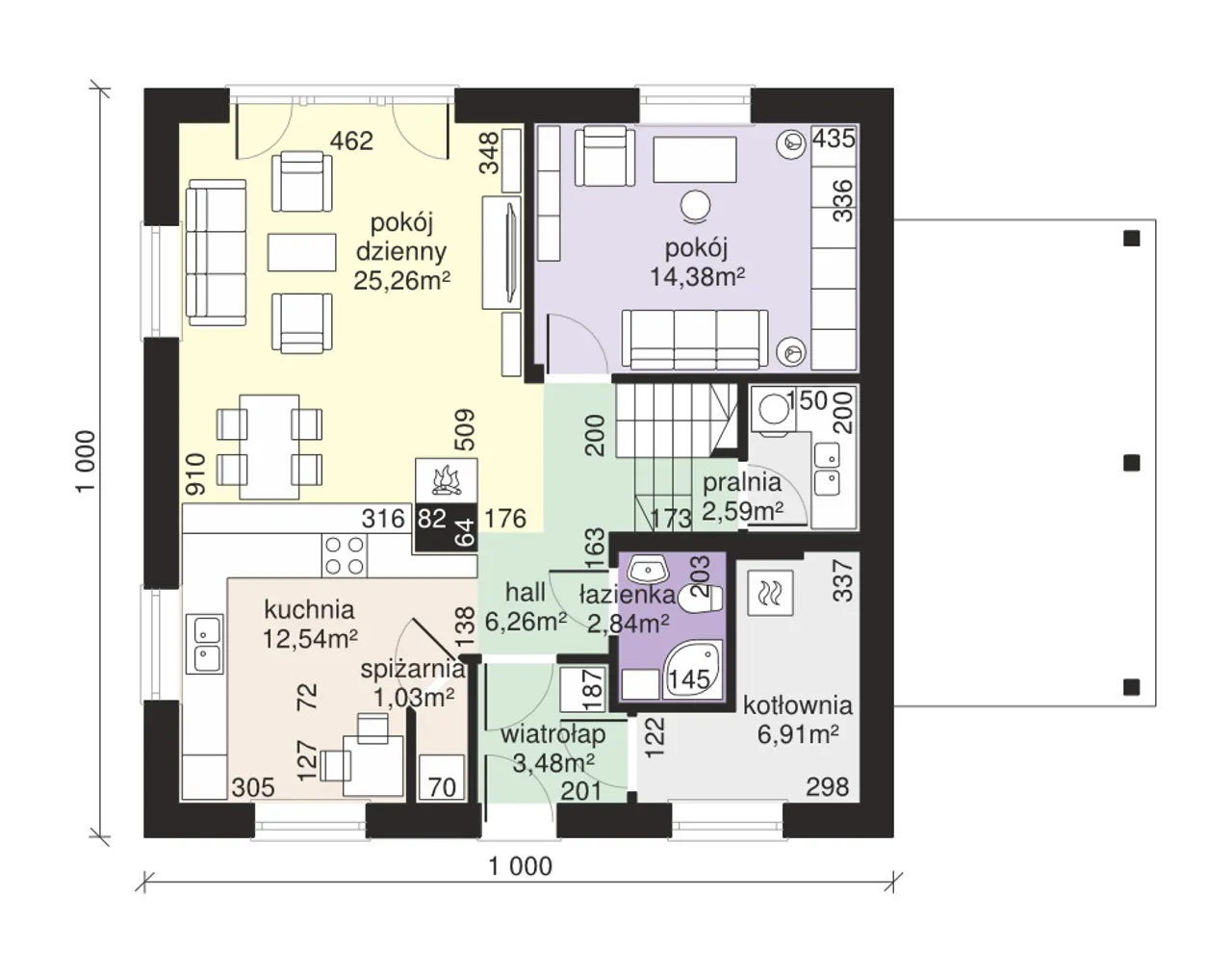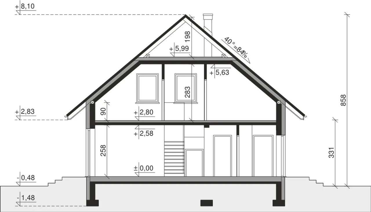 Wypełnij formularz i otrzymaj rysunki w pdf z dokładnymi wymiarami budynku i pomieszczeń (długość, szerokość, wysokość) dla projektu Dom przy Cyprysowej 52