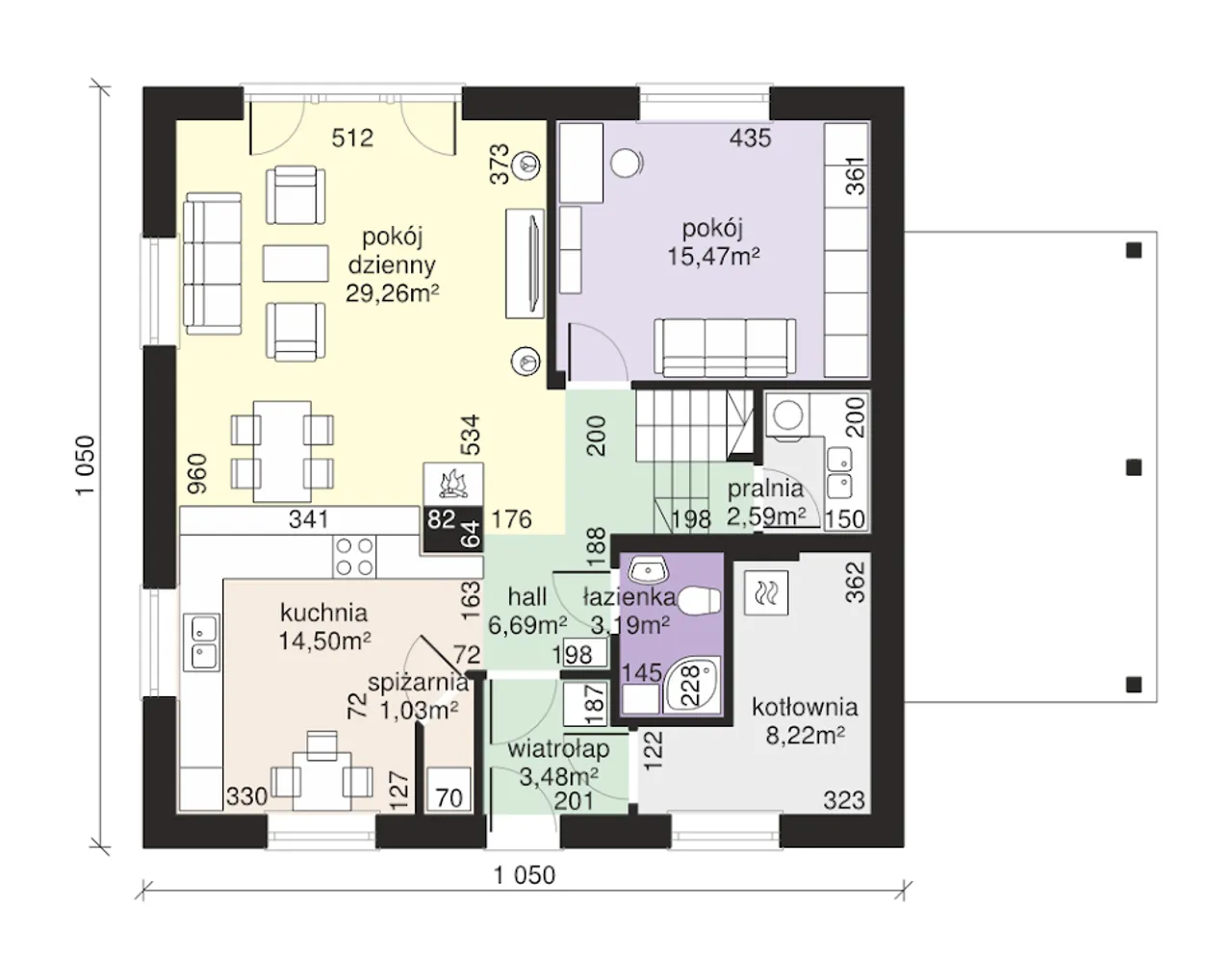 | Szerokość budynku 10.5 m |