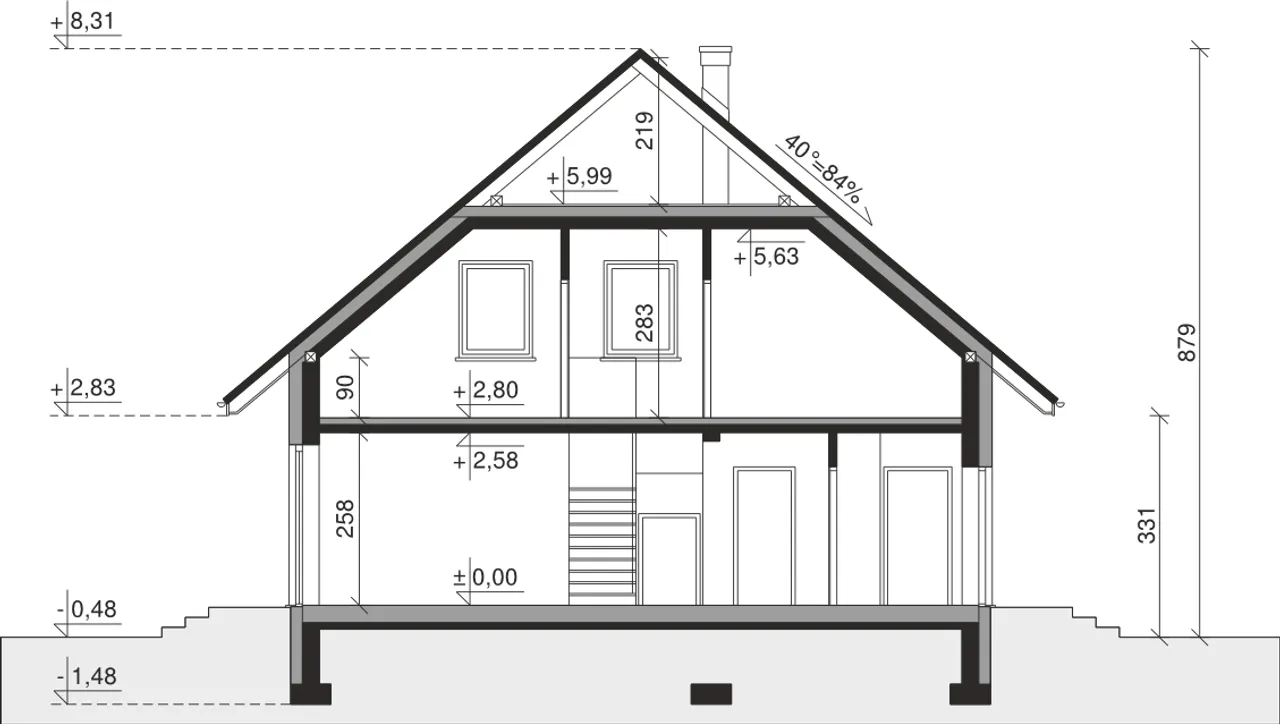 | Kąt nachylenia dachu 40 ° |