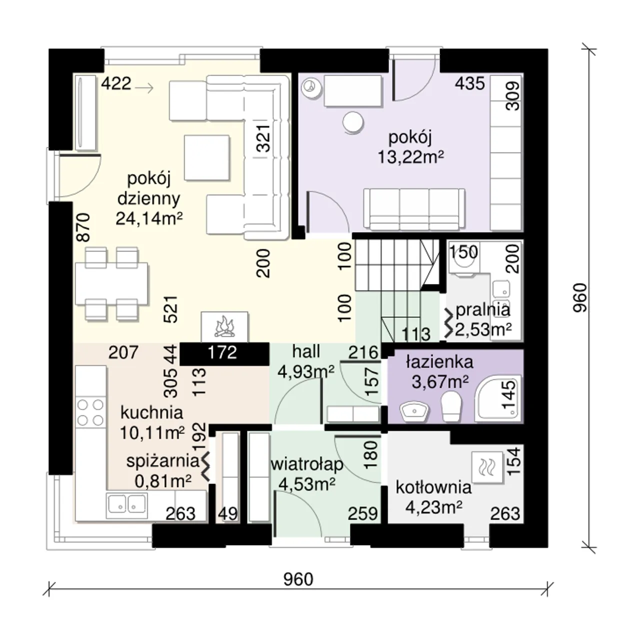 | Szerokość budynku 9.6 m |