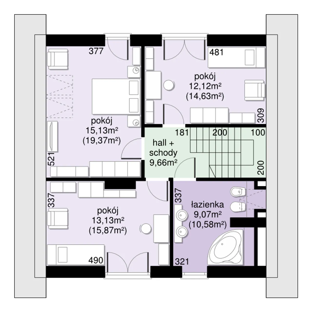 | 4. Pokój | 15,13 (19,37) m² |