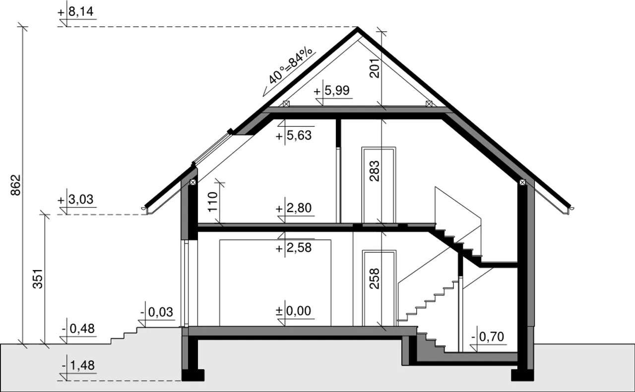 | Kąt nachylenia dachu 40 ° |