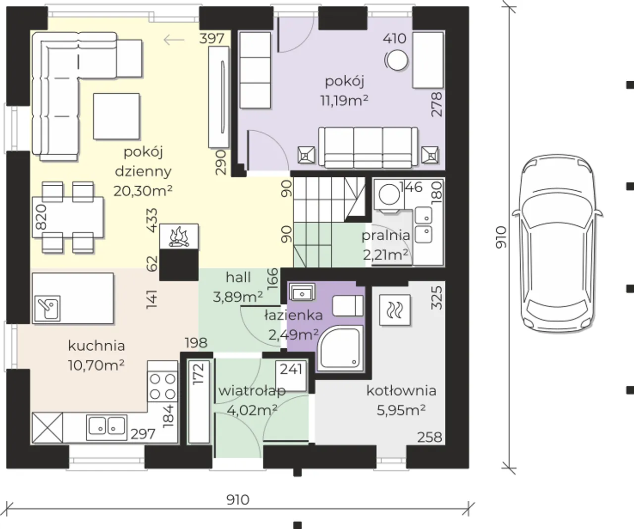 Wypełnij formularz i otrzymaj rysunki w pdf z dokładnymi wymiarami budynku i pomieszczeń (długość, szerokość, wysokość) dla projektu Dom przy Cyprysowej 68