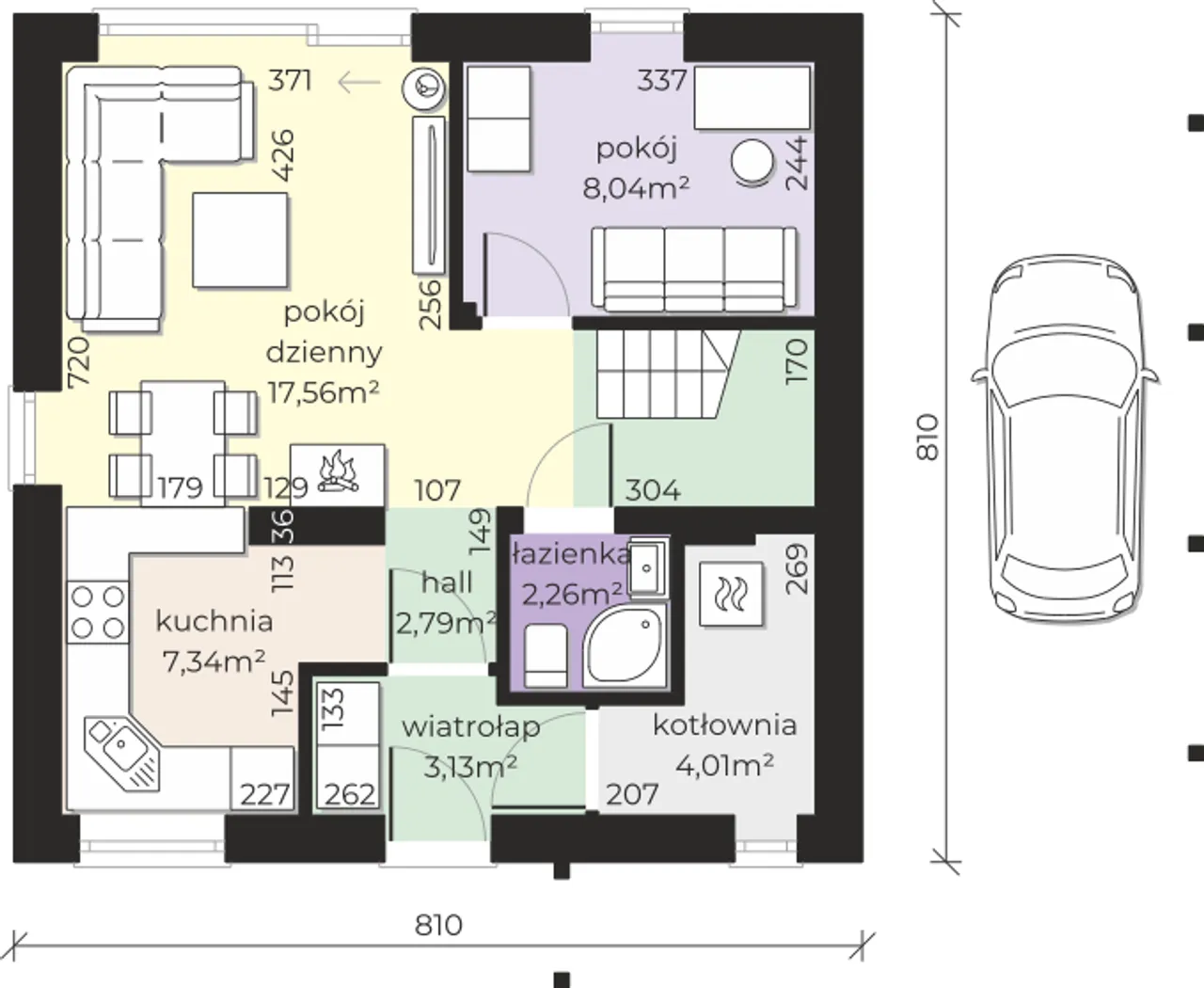 Wypełnij formularz i otrzymaj rysunki w pdf z dokładnymi wymiarami budynku i pomieszczeń (długość, szerokość, wysokość) dla projektu Dom przy Cyprysowej 76