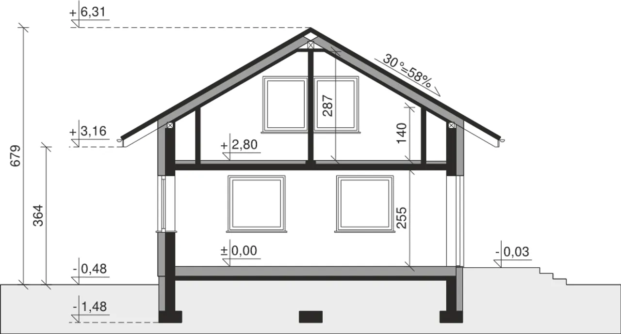Wypełnij formularz i otrzymaj rysunki w pdf z dokładnymi wymiarami budynku i pomieszczeń (długość, szerokość, wysokość) dla projektu Dom przy Imbirowej 4