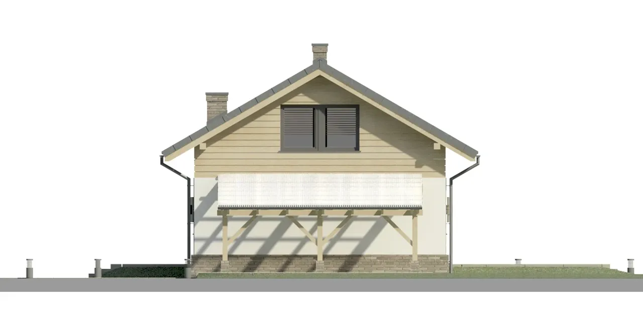 Kupując projekt w technologii murowanej powinieneś budować dom murowany. Zupełna zmiana technologii na szkieletową wymaga przeprojektowania całego budynku ( zmieniają się obciążenia, fundamenty, konstrukcja dachu). Wydamy zgodę na takie przeprojektowanie jednak wiążę się to z dużymi kosztami. Istnieją firmy wykonawcze, które podejmują się zmiany technologii budowy bezpłatnie przy skorzystaniu z ich usług wykonawczych. Zdarza się, że pracownia architektoniczna przygotowuje warianty konkretnego projektu przewidując także inne technologie. Prosimy o sprawdzenie czy istnieje poszukiwana wersja projektu, w zakładce - warianty projektu.