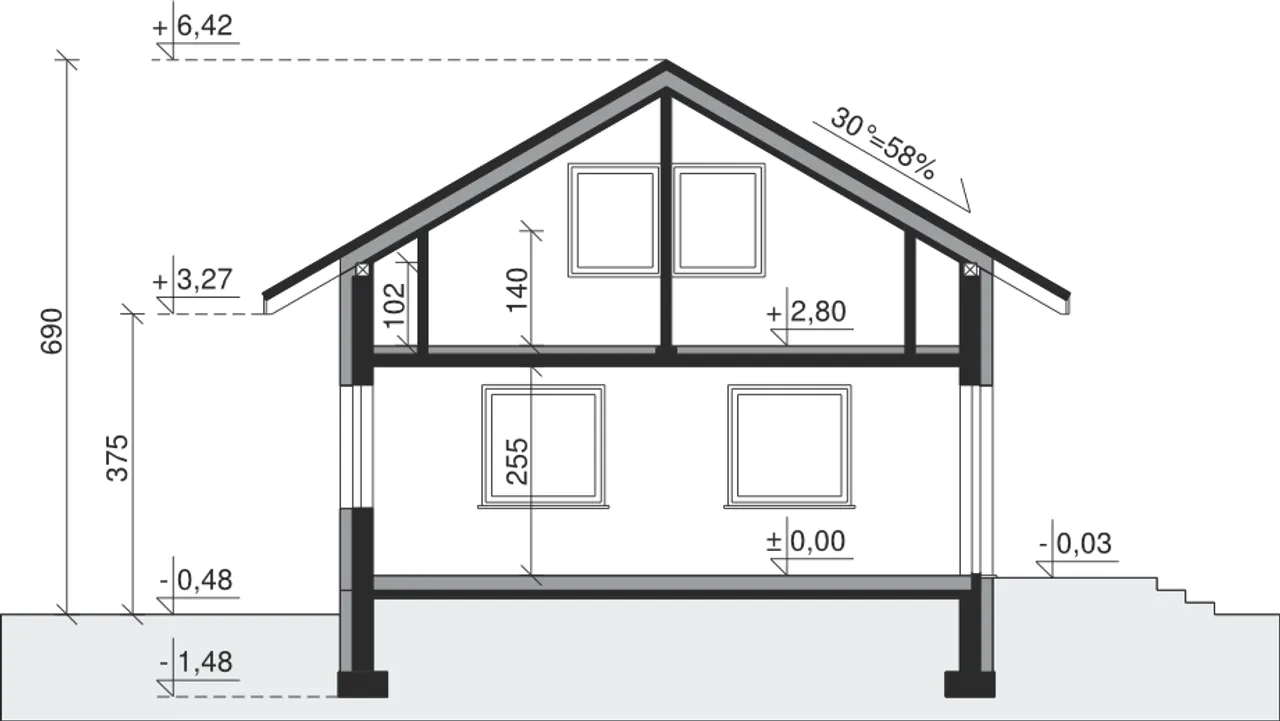 Wypełnij formularz i otrzymaj rysunki w pdf z dokładnymi wymiarami budynku i pomieszczeń (długość, szerokość, wysokość) dla projektu Dom przy Imbirowej 6 N