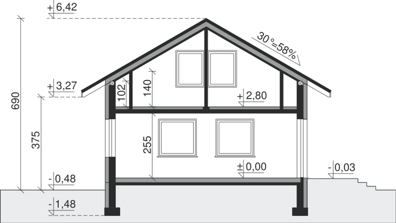 Wypełnij formularz i otrzymaj rysunki w pdf z dokładnymi wymiarami budynku i pomieszczeń (długość, szerokość, wysokość) dla projektu Dom przy Imbirowej 7