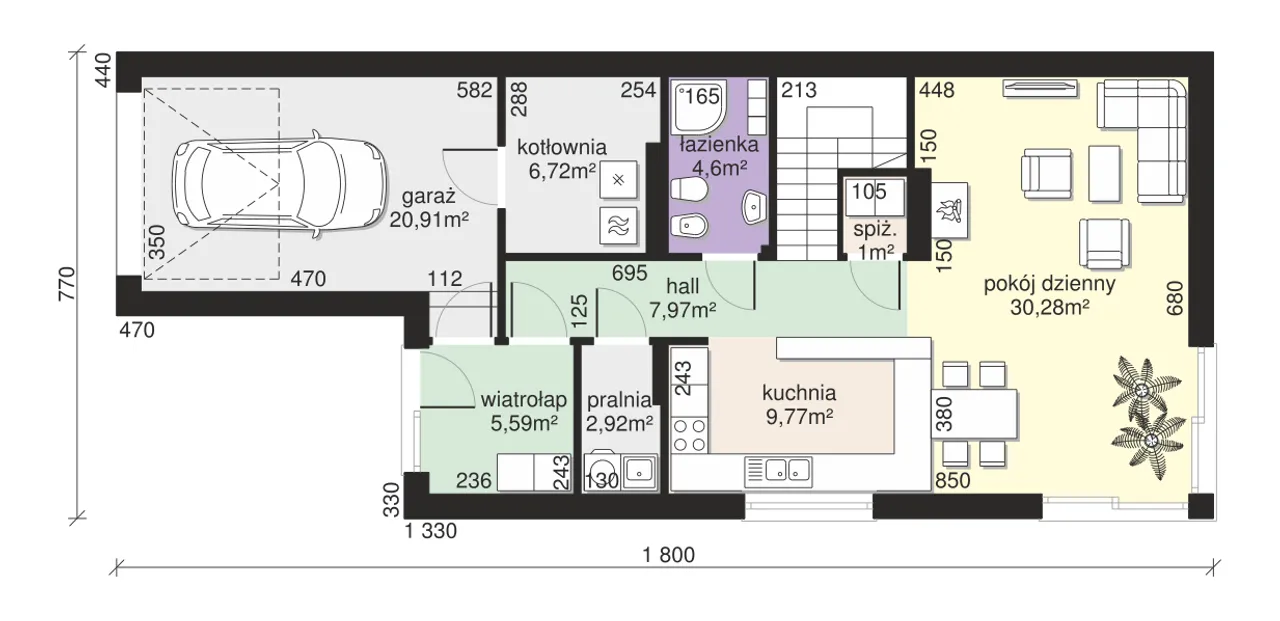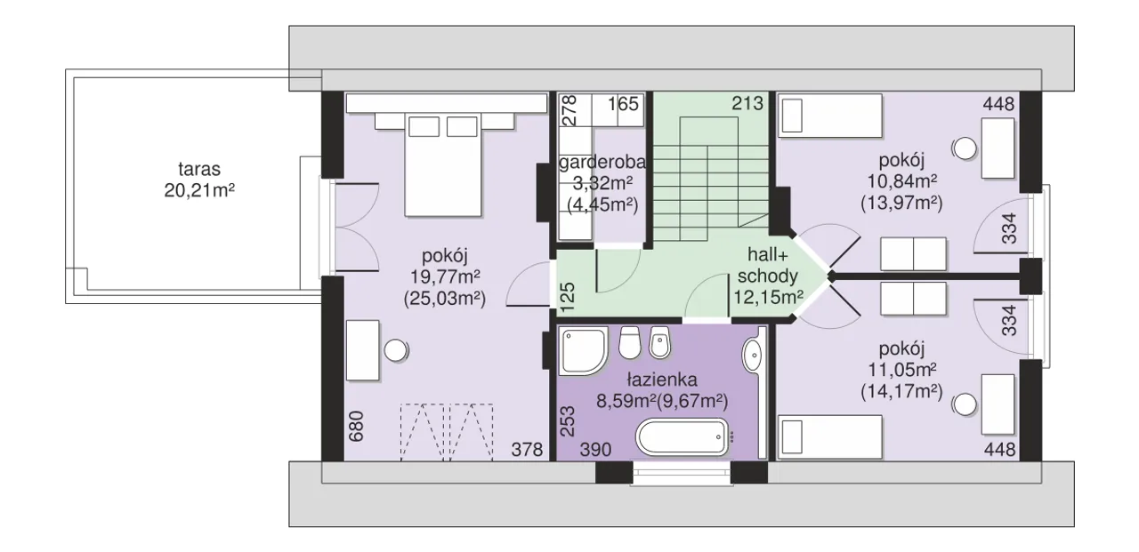 Wypełnij formularz i otrzymaj rysunki w pdf z dokładnymi wymiarami budynku i pomieszczeń (długość, szerokość, wysokość) dla projektu Dom przy Kolorowej 2