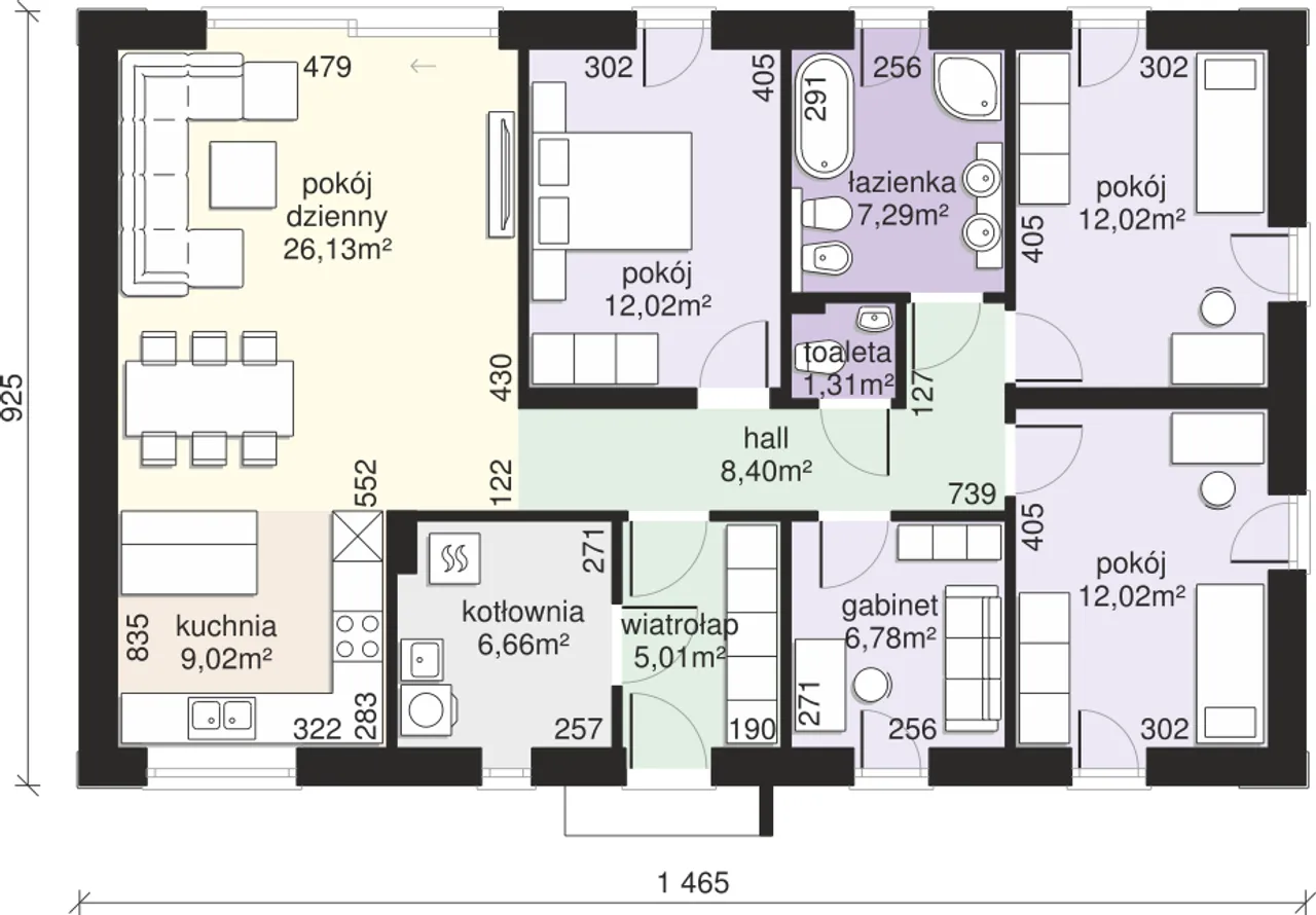 | Szerokość budynku 14.65 m |