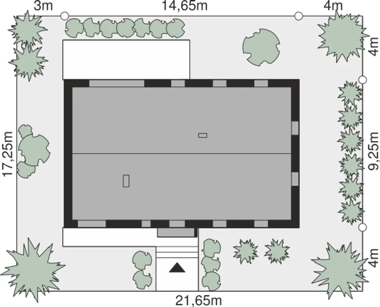 | Długość budynku 9.25 m |