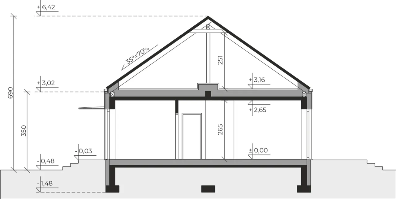 Wypełnij formularz i otrzymaj rysunki w pdf z dokładnymi wymiarami budynku i pomieszczeń (długość, szerokość, wysokość) dla projektu Dom przy Olchowej 7