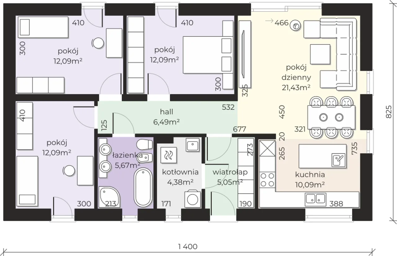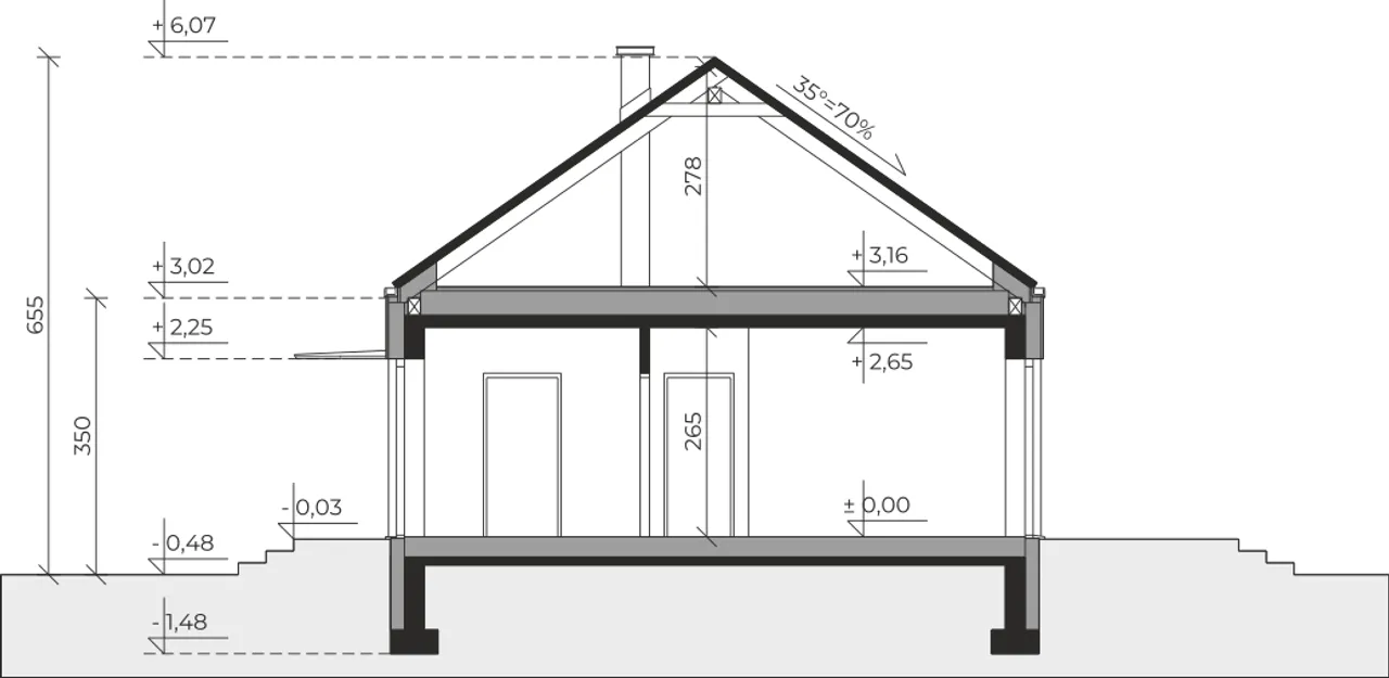 Wypełnij formularz i otrzymaj rysunki w pdf z dokładnymi wymiarami budynku i pomieszczeń (długość, szerokość, wysokość) dla projektu Dom przy Olchowej 9