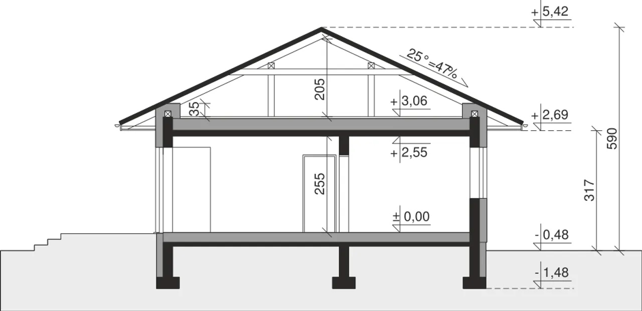 Kąt nachylenia dachu 25 ° |