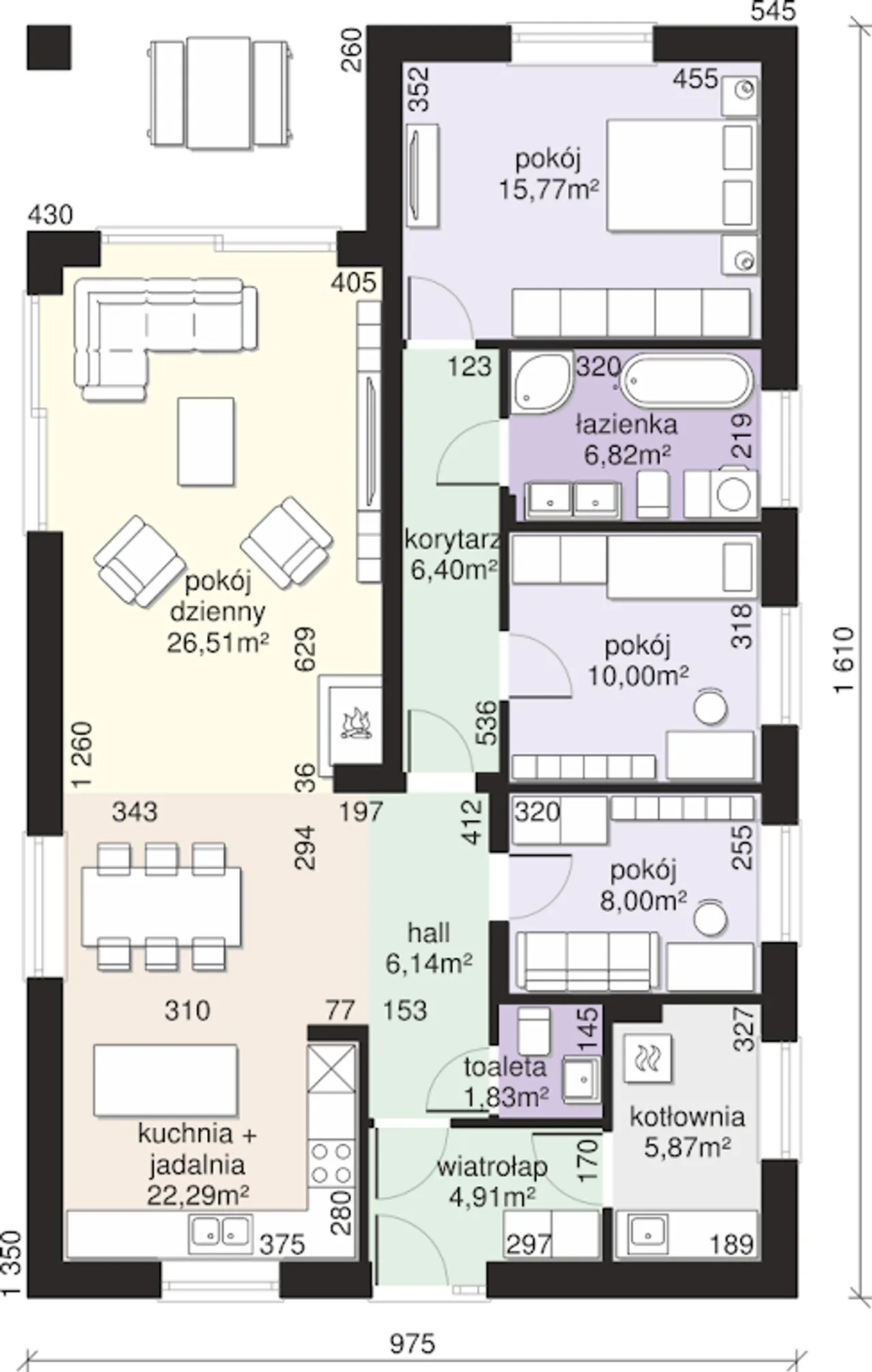 Wypełnij formularz i otrzymaj rysunki w pdf z dokładnymi wymiarami budynku i pomieszczeń (długość, szerokość, wysokość) dla projektu Dom przy Pastelowej 25