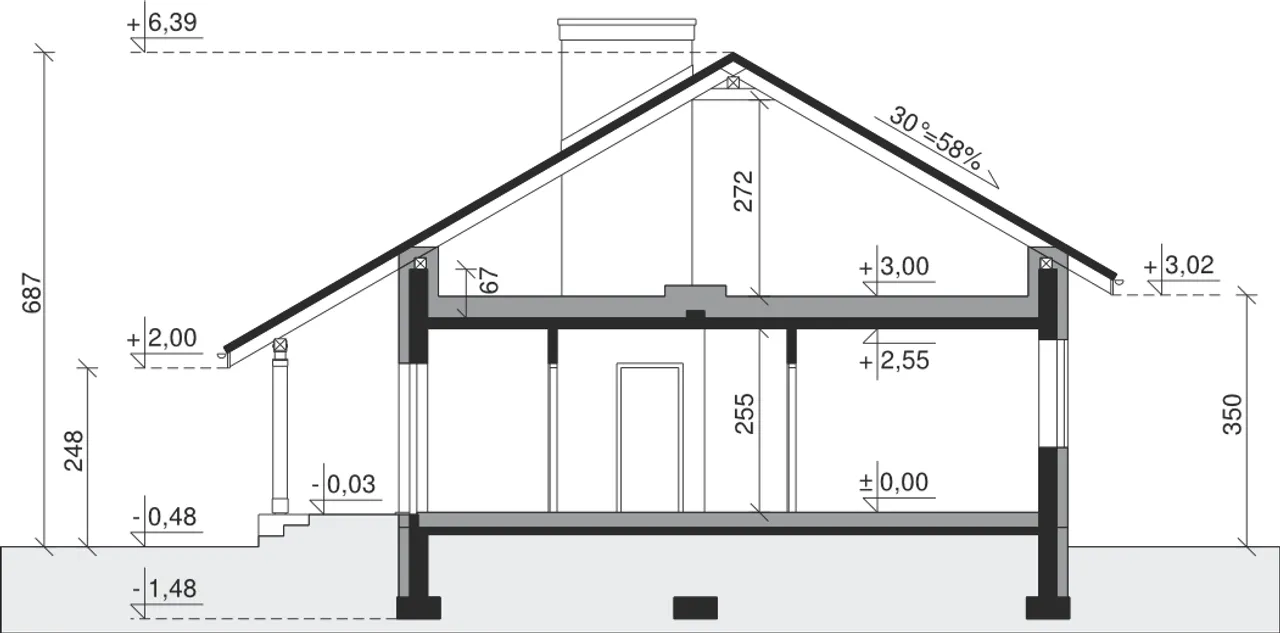| Kąt nachylenia dachu 30 ° |