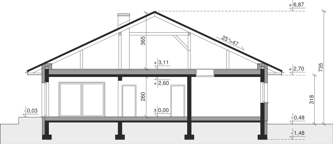 Kupując projekt w technologii murowanej powinieneś budować dom murowany. Zupełna zmiana technologii na szkieletową wymaga przeprojektowania całego budynku ( zmieniają się obciążenia, fundamenty, konstrukcja dachu). Wydamy zgodę na takie przeprojektowanie jednak wiążę się to z dużymi kosztami. Istnieją firmy wykonawcze, które podejmują się zmiany technologii budowy bezpłatnie przy skorzystaniu z ich usług wykonawczych. Zdarza się, że pracownia architektoniczna przygotowuje warianty konkretnego projektu przewidując także inne technologie. Prosimy o sprawdzenie czy istnieje poszukiwana wersja projektu, w zakładce - warianty projektu.