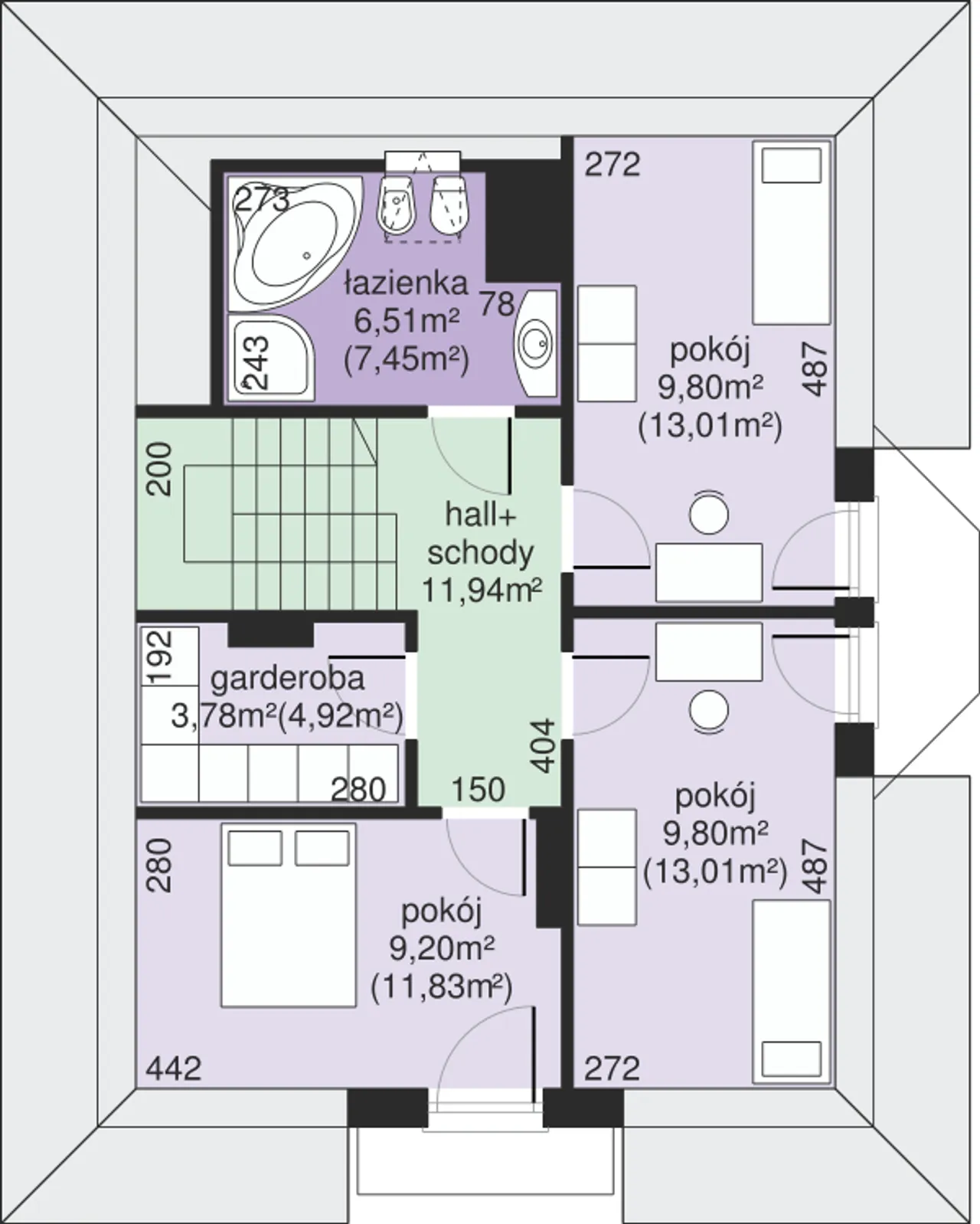 Wypełnij formularz i otrzymaj rysunki w pdf z dokładnymi wymiarami budynku i pomieszczeń (długość, szerokość, wysokość) dla projektu Dom przy Sielskiej 10