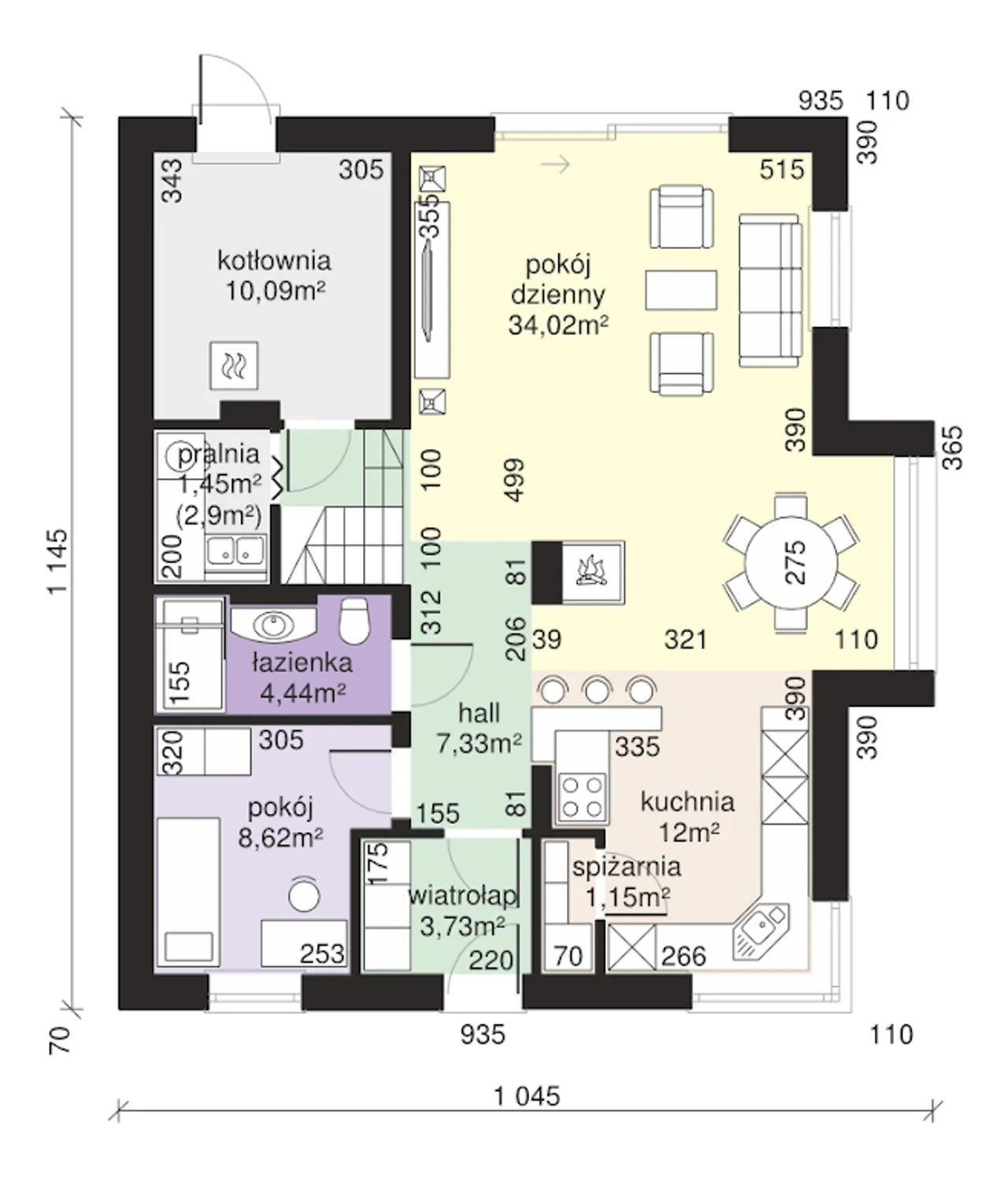Wypełnij formularz i otrzymaj rysunki w pdf z dokładnymi wymiarami budynku i pomieszczeń (długość, szerokość, wysokość) dla projektu Dom przy Sielskiej 6 N