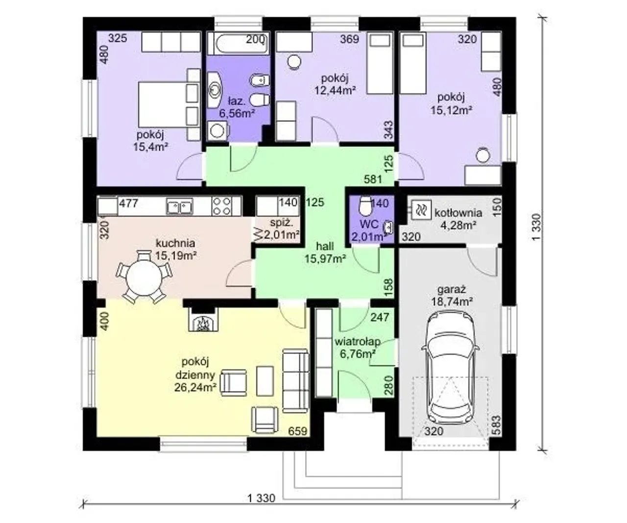 Wypełnij formularz i otrzymaj rysunki w pdf z dokładnymi wymiarami budynku i pomieszczeń (długość, szerokość, wysokość) dla projektu Dom przy Słonecznej 2 bis