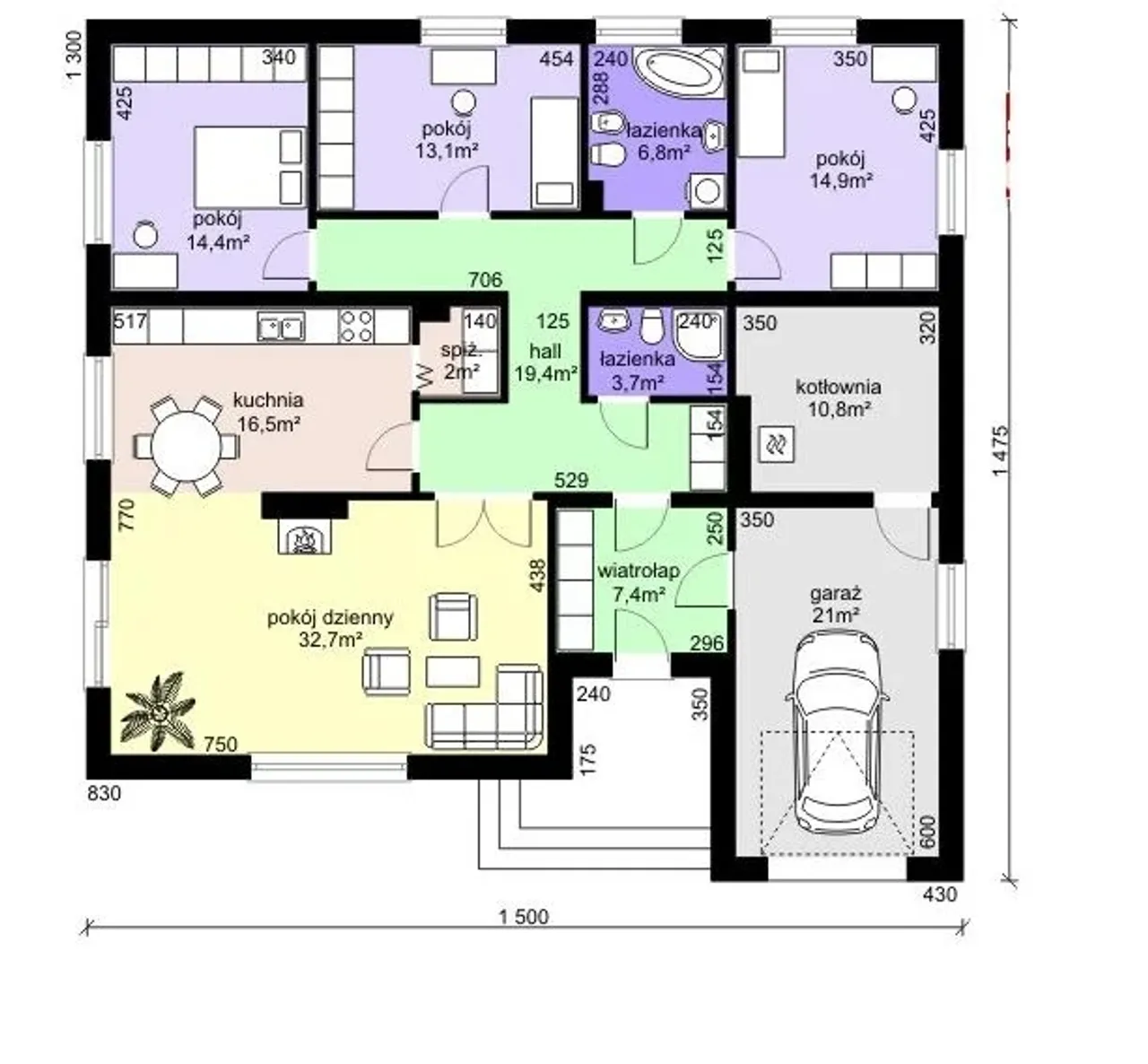 Kupując projekt w technologii murowanej powinieneś budować dom murowany. Zupełna zmiana technologii na szkieletową wymaga przeprojektowania całego budynku ( zmieniają się obciążenia, fundamenty, konstrukcja dachu). Wydamy zgodę na takie przeprojektowanie jednak wiążę się to z dużymi kosztami. Istnieją firmy wykonawcze, które podejmują się zmiany technologii budowy bezpłatnie przy skorzystaniu z ich usług wykonawczych. Zdarza się, że pracownia architektoniczna przygotowuje warianty konkretnego projektu przewidując także inne technologie. Prosimy o sprawdzenie czy istnieje poszukiwana wersja projektu, w zakładce - warianty projektu.