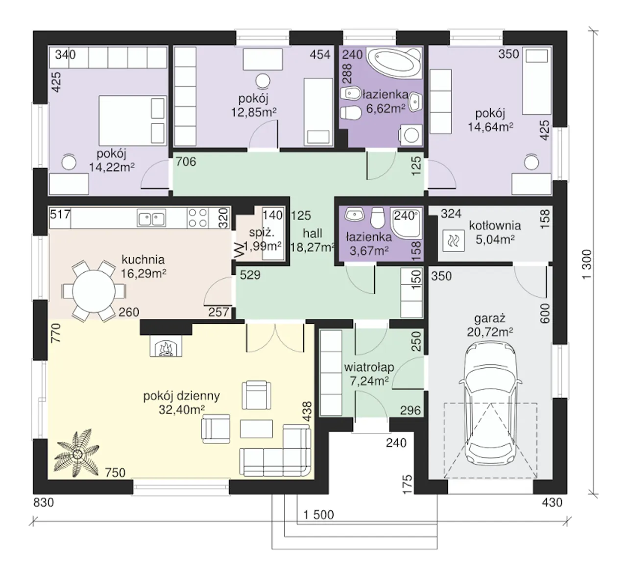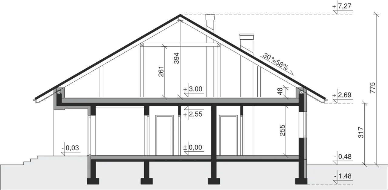 Wypełnij formularz i otrzymaj rysunki w pdf z dokładnymi wymiarami budynku i pomieszczeń (długość, szerokość, wysokość) dla projektu Dom przy Słonecznej 5 bis
