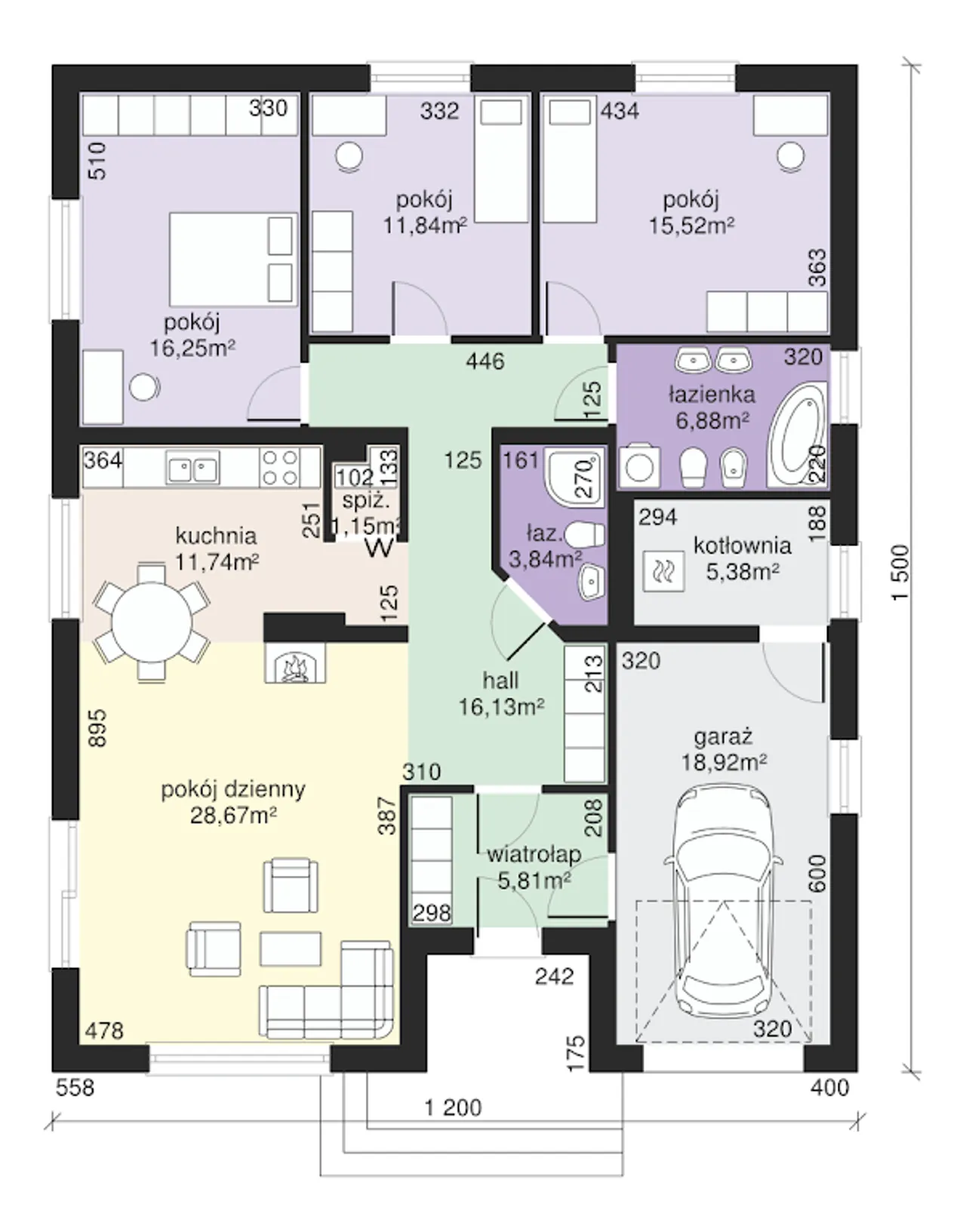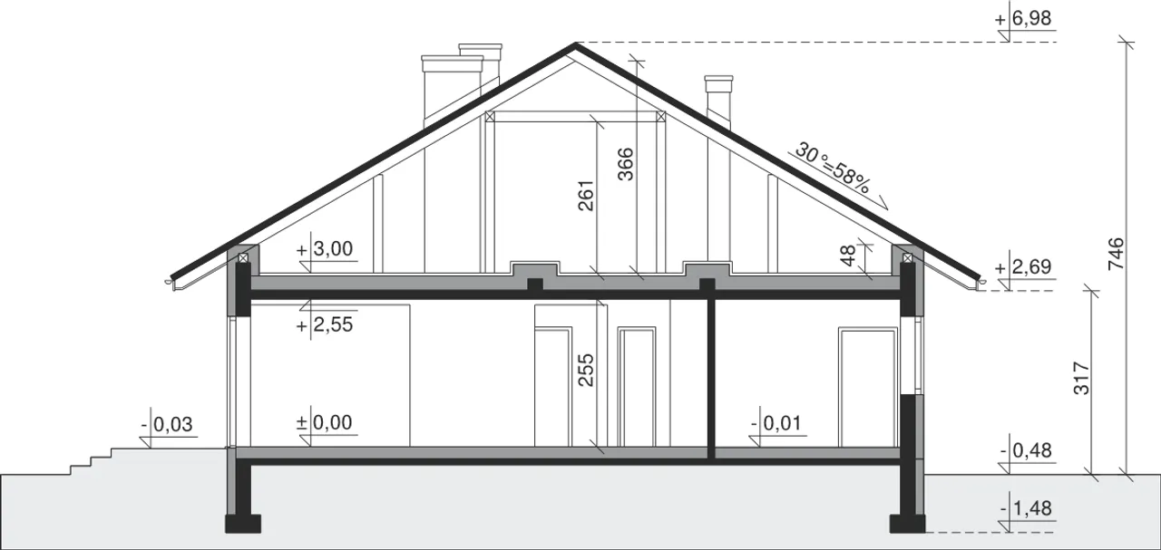 Wypełnij formularz i otrzymaj rysunki w pdf z dokładnymi wymiarami budynku i pomieszczeń (długość, szerokość, wysokość) dla projektu Dom przy Słonecznej 6 bis