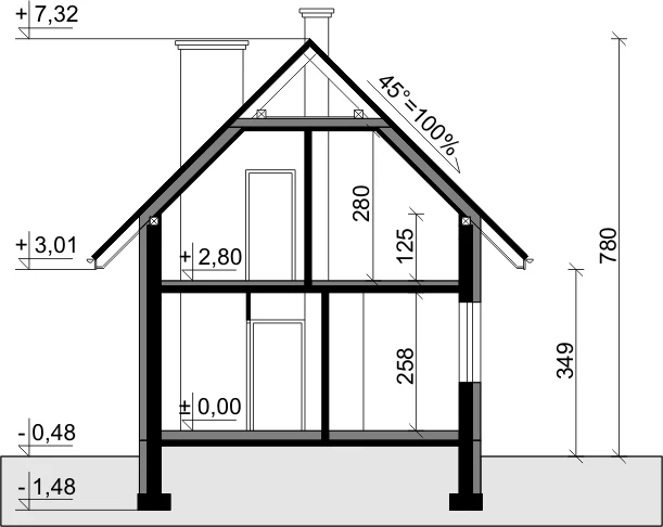Prezentujemy gotowy projekt domu o nazwie Dom przy Waniliowej 2. Budynek na podstawie tego projektu domu będzie wykonany w technologii murowanej. Projekt Dom przy Waniliowej 2 ma zaprojektowany kominek w salonie . Powierzchnia użytkowa domu o wielkości 76.3m obejmuje parter i poddasze budynku. Projekt domu Dom przy Waniliowej 2 jest przystosowany do ogrzewania na gaz. Dom nie jest podpiwniczony.W projekcie nie ma garażu. Dach w projekcie Dom przy Waniliowej 2 ma kształt dwuspadowy i powierzchnię 108.9m a kąt nachylenia dachu wynosi 42 stopni.Gotowy projekt domu Dom przy Waniliowej 2 to dom całoroczny o tradycyjnym stylu wykończenia elewacji zewnętrznych.Dom przy Waniliowej 2 zmieści się na działce, której szerokość nie będzie mniejsza niż 14.15m. Wysokość domu do poziomu kalenicy wyniesie 7.49m.