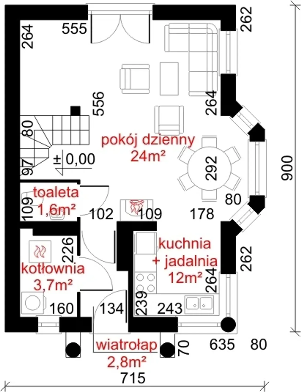 Wypełnij formularz i otrzymaj rysunki w pdf z dokładnymi wymiarami budynku i pomieszczeń (długość, szerokość, wysokość) dla projektu Dom przy Waniliowej
