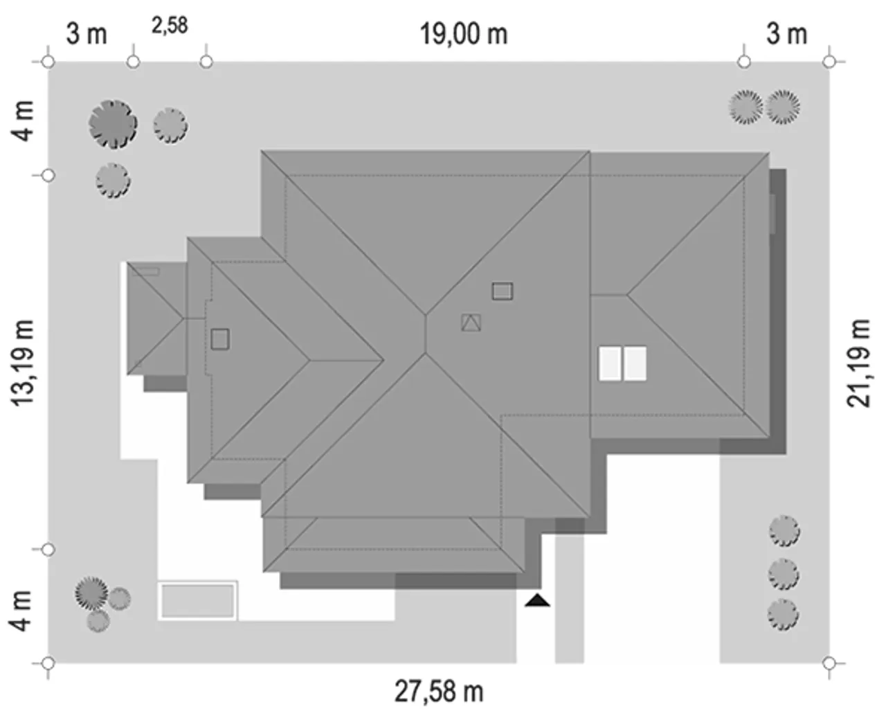 Wypełnij formularz i otrzymaj rysunki w pdf z dokładnymi wymiarami budynku i pomieszczeń (długość, szerokość, wysokość) dla projektu Dom z Widokiem 3 wariant C