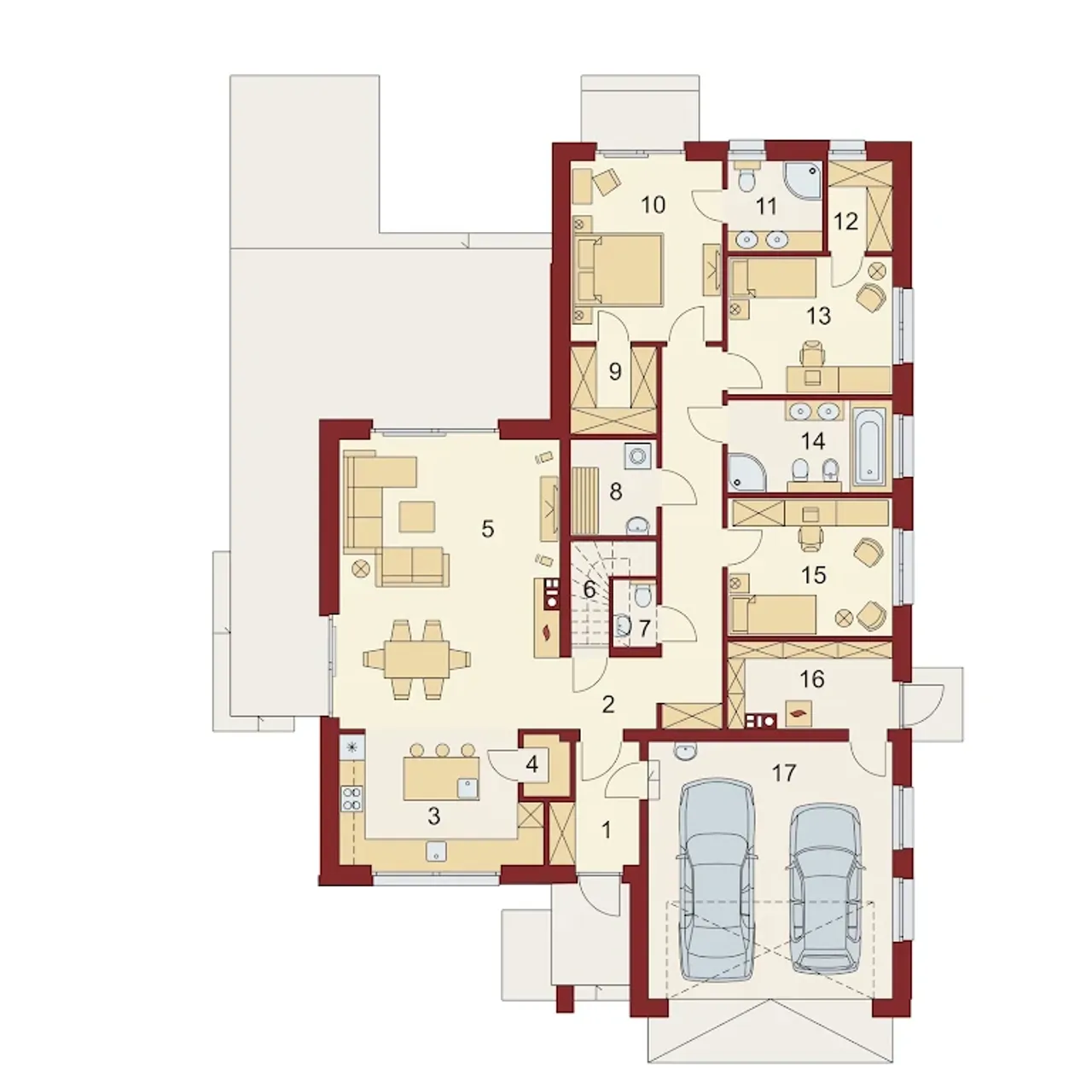 Bryła budynku plan litery T |