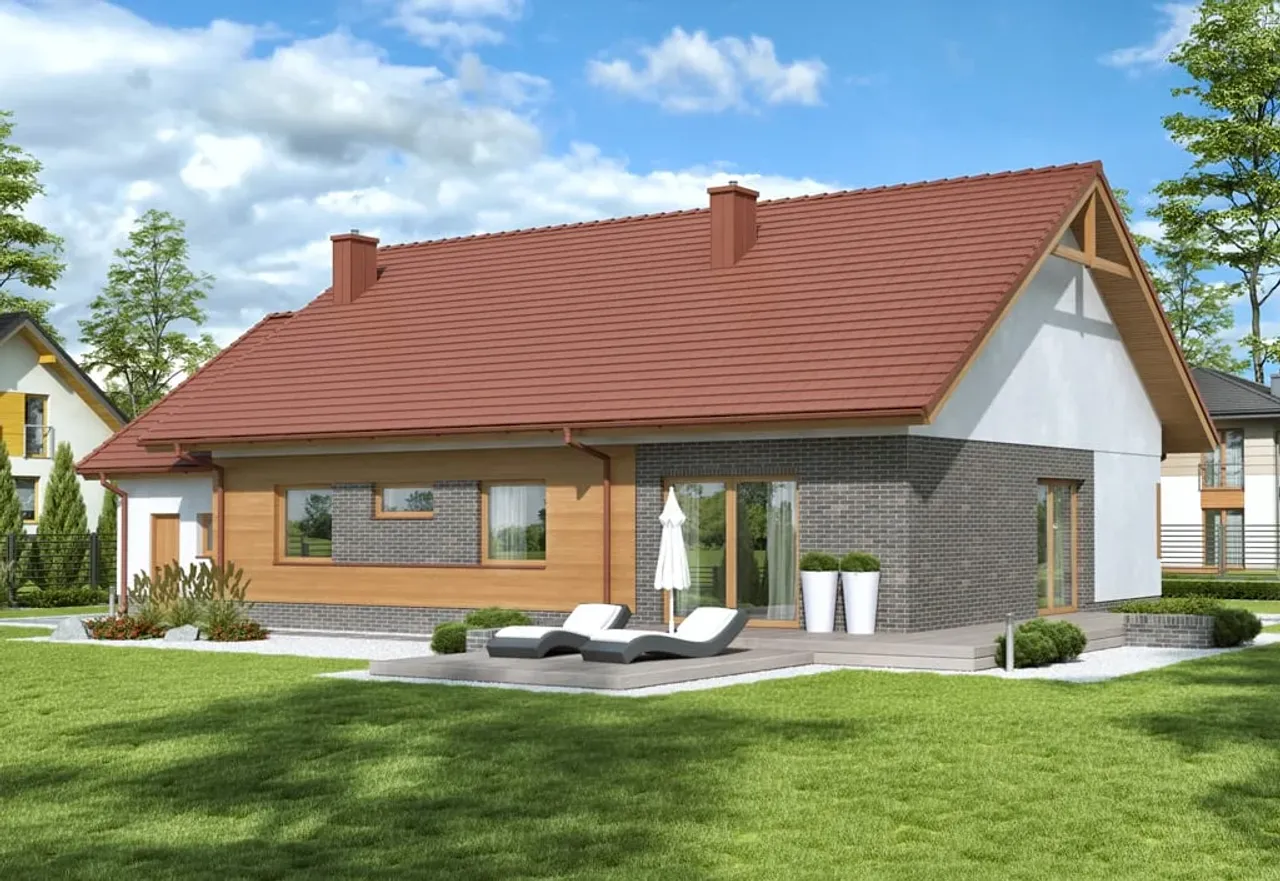 Kupując projekt w technologii murowanej powinieneś budować dom murowany. Zupełna zmiana technologii na szkieletową wymaga przeprojektowania całego budynku ( zmieniają się obciążenia, fundamenty, konstrukcja dachu). Wydamy zgodę na takie przeprojektowanie jednak wiążę się to z dużymi kosztami. Istnieją firmy wykonawcze, które podejmują się zmiany technologii budowy bezpłatnie przy skorzystaniu z ich usług wykonawczych. Zdarza się, że pracownia architektoniczna przygotowuje warianty konkretnego projektu przewidując także inne technologie. Prosimy o sprawdzenie czy istnieje poszukiwana wersja projektu, w zakładce - warianty projektu.