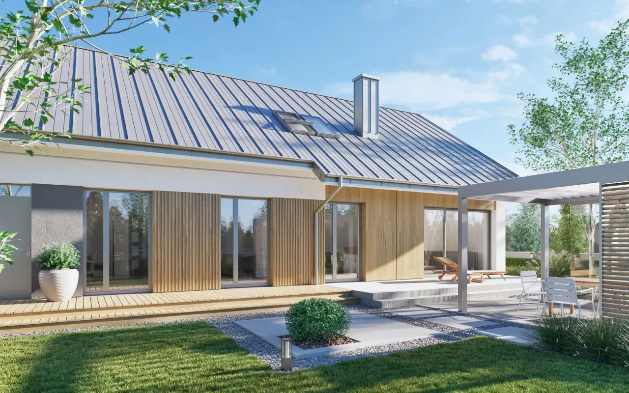 - Pokrycie dachu: blacha na rąbek stojacy.