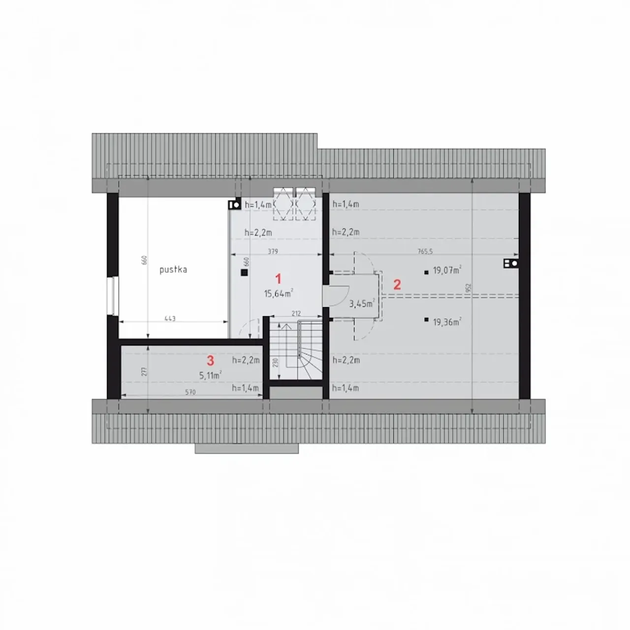 Wypełnij formularz i otrzymaj na podany adres e-mail rysunki w pdf z dokładnymi wymiarami budynku i pomieszczeń (długość, szerokość, wysokość) dla projektu Domena 118 C1