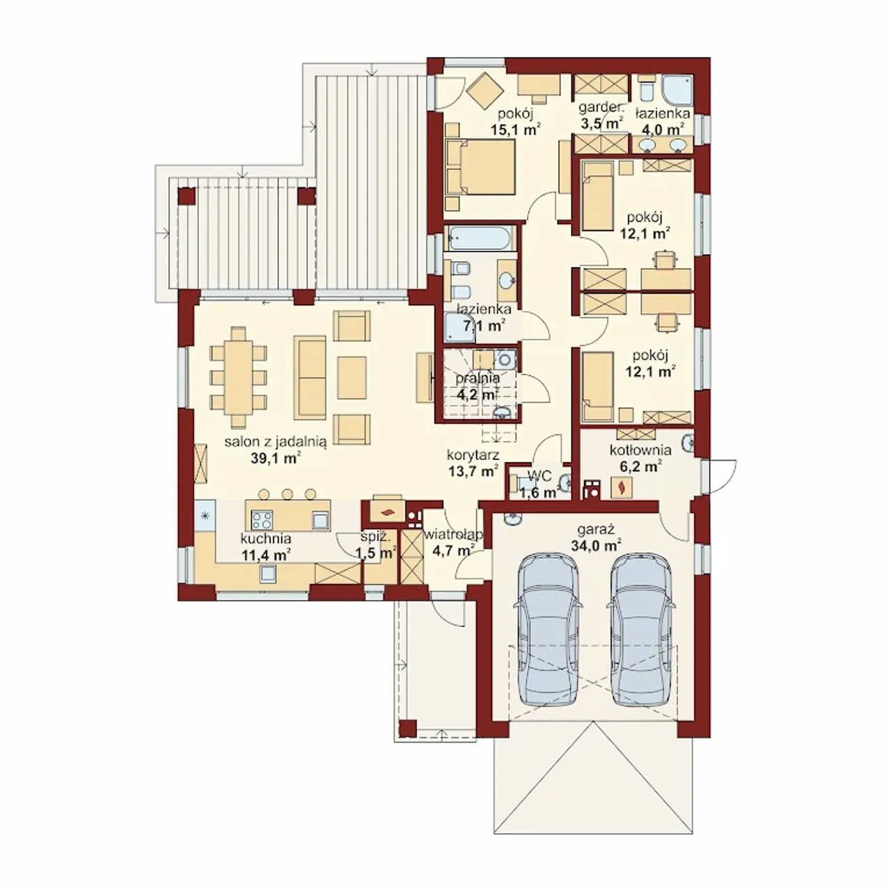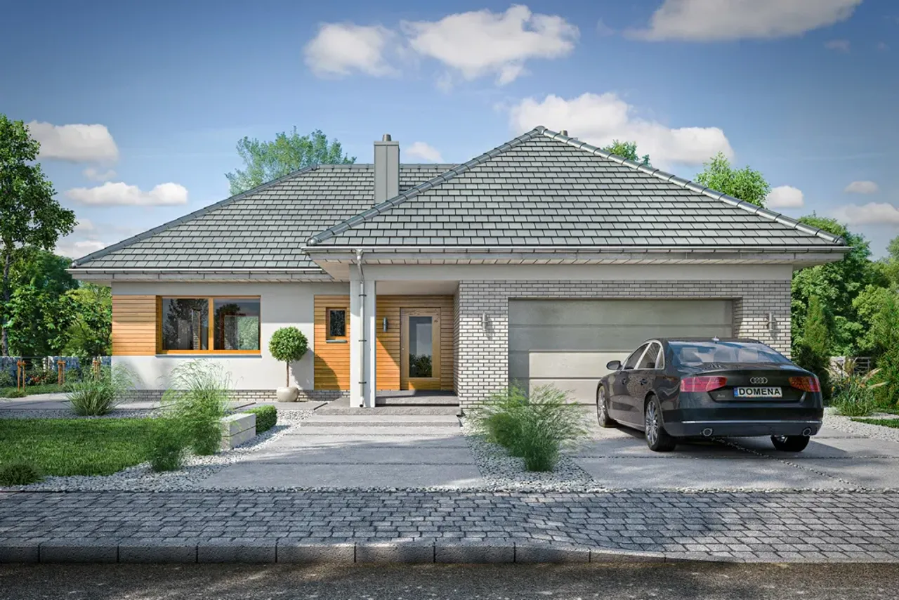 Wypełnij formularz i otrzymaj rysunki w pdf z dokładnymi wymiarami budynku i pomieszczeń (długość, szerokość, wysokość) dla projektu DOMENA 126 B