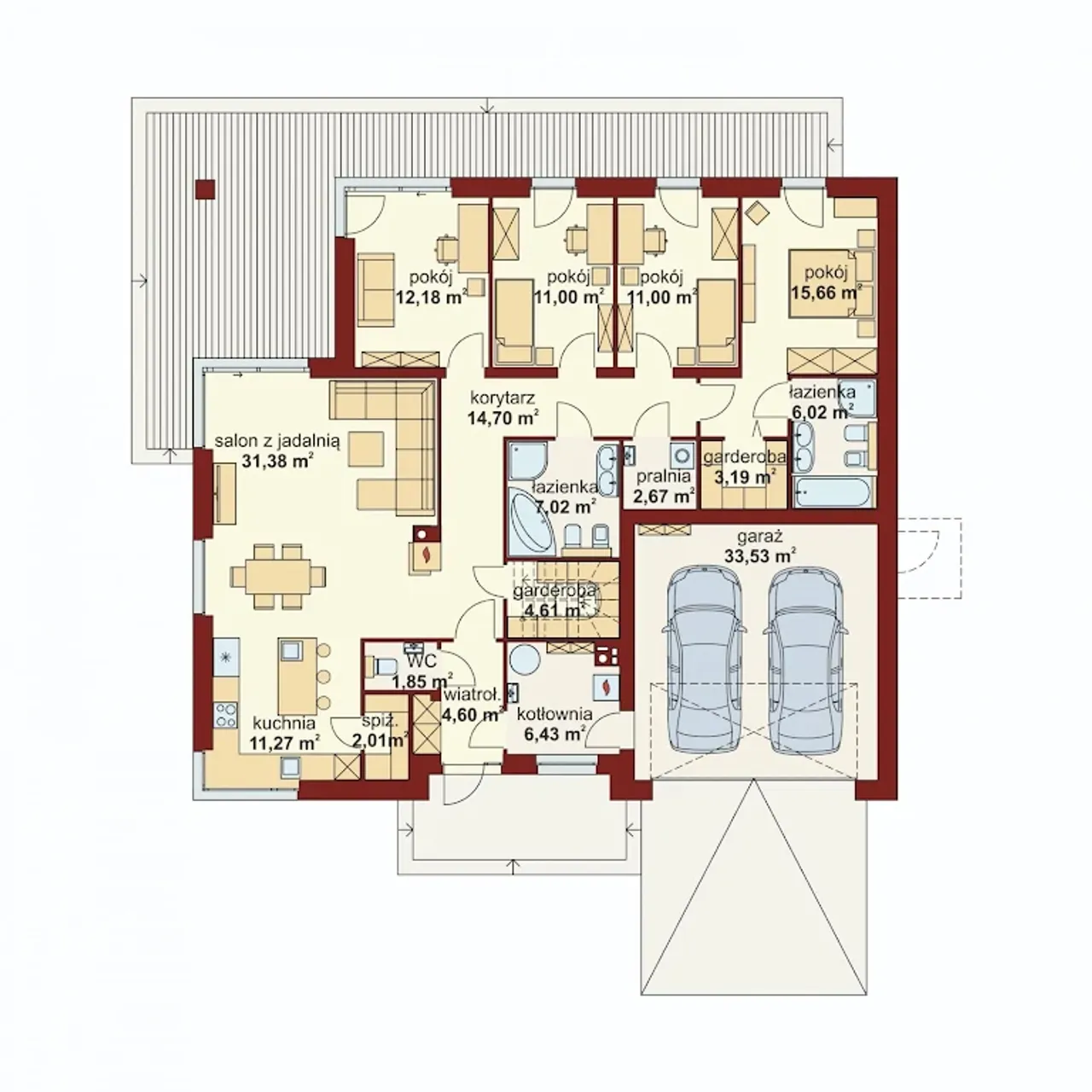 Wypełnij formularz i otrzymaj rysunki w pdf z dokładnymi wymiarami budynku i pomieszczeń (długość, szerokość, wysokość) dla projektu Domena 131 B