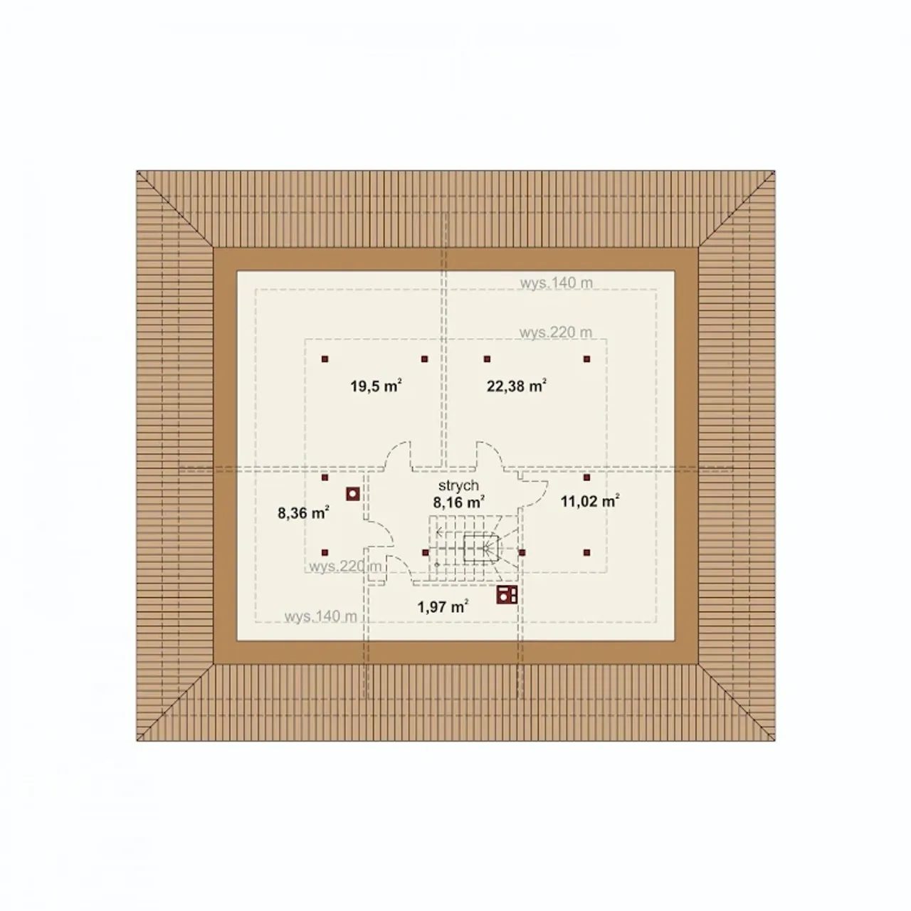 - opis techniczny – zawiera rozwiązania funkcjonalne projektu, wielkości powierzchni (całkowitej, zabudowy, użytkowej), kubatury, wysokość kalenicy itp., proponowane rozwiązania materiałowe i wykończeniowe
