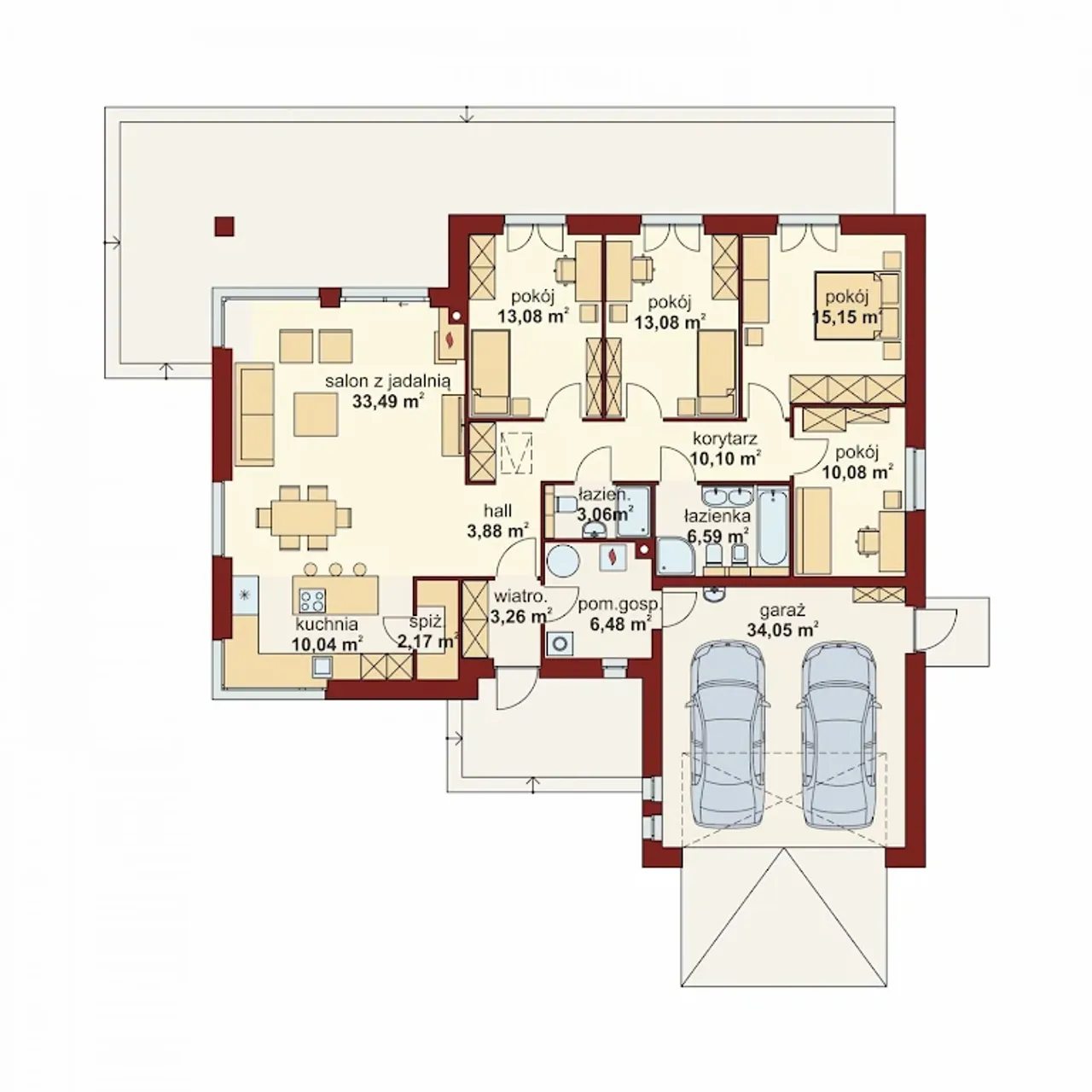 Wypełnij formularz i otrzymaj rysunki w pdf z dokładnymi wymiarami budynku i pomieszczeń (długość, szerokość, wysokość) dla projektu DOMENA 136 B