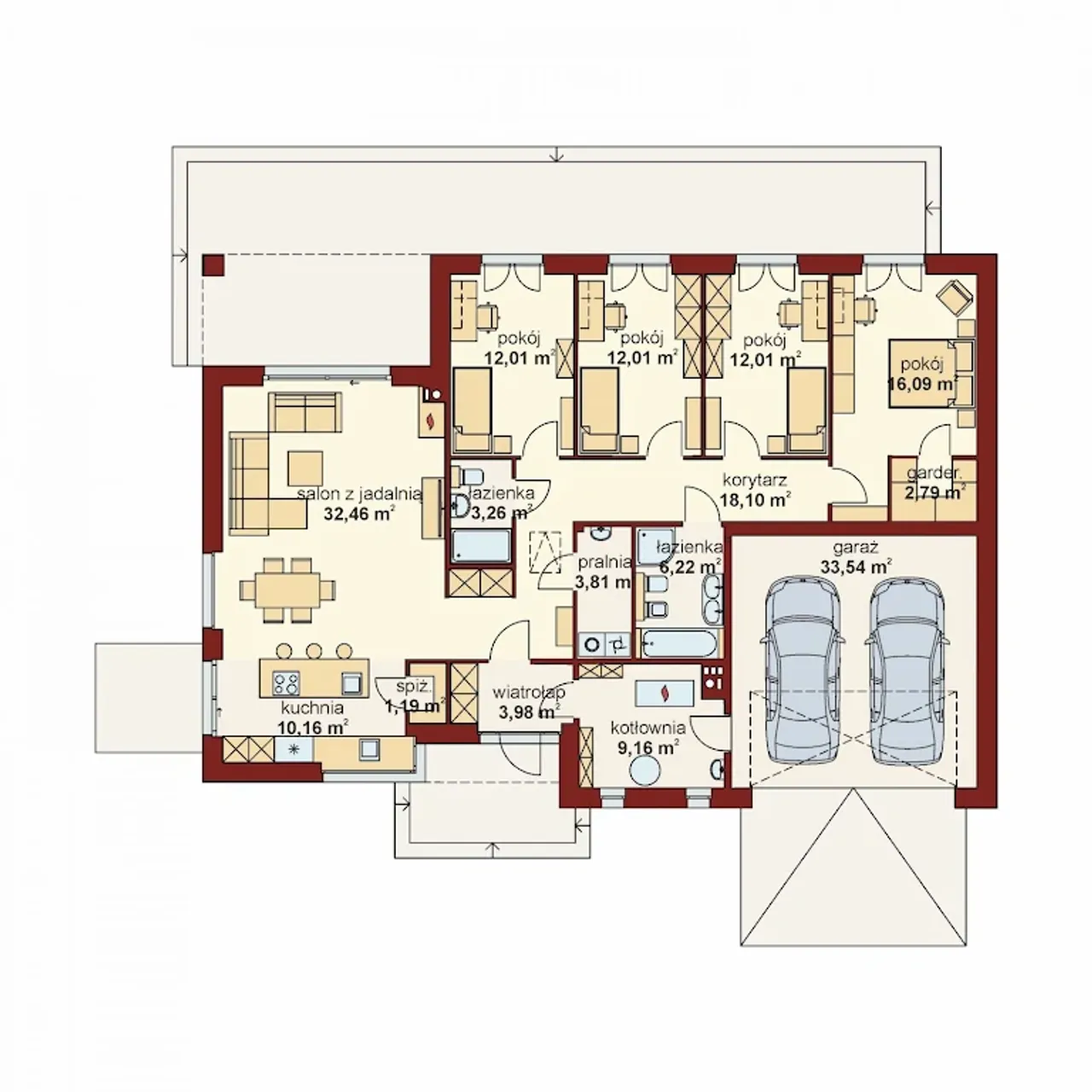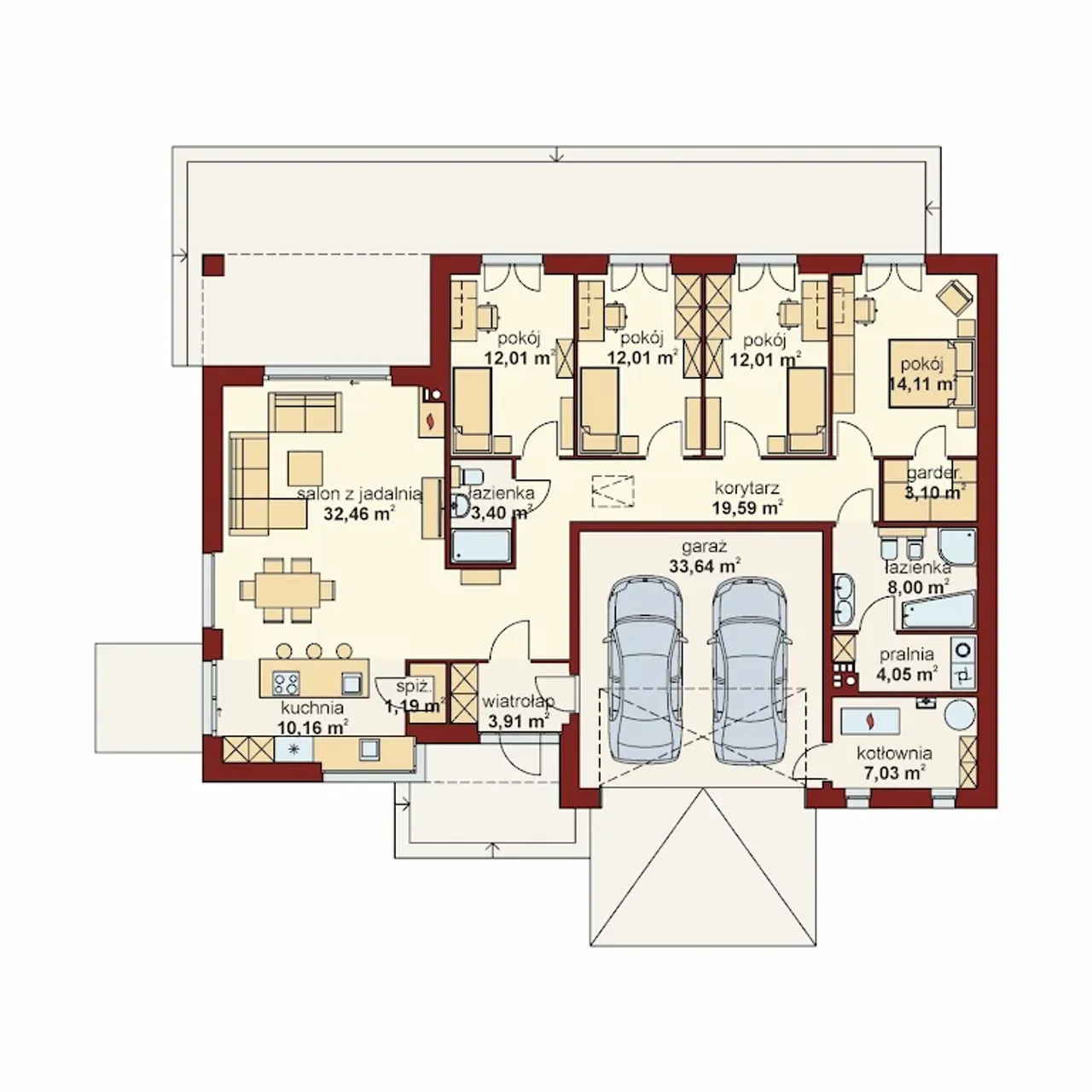 Wypełnij formularz i otrzymaj rysunki w pdf z dokładnymi wymiarami budynku i pomieszczeń (długość, szerokość, wysokość) dla projektu Domena 145 B