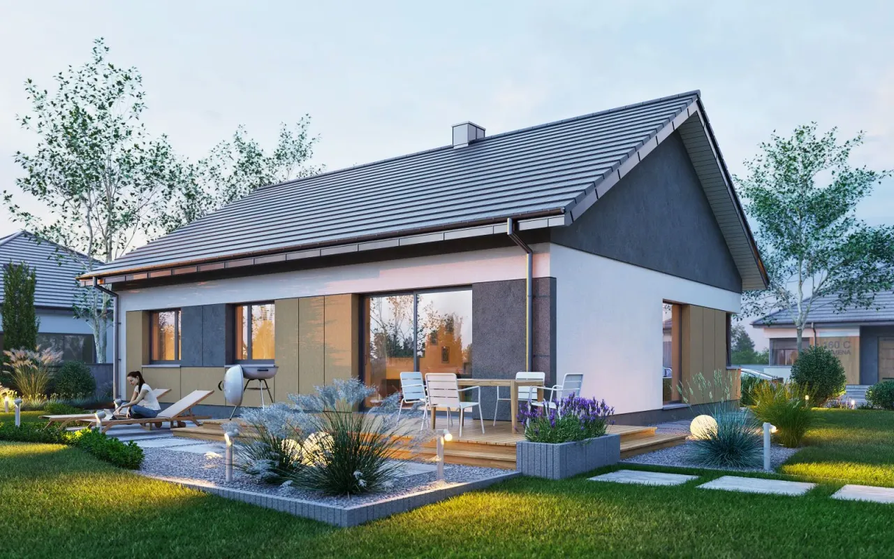 - Pokrycie dachu: blachodachówka lub dachówka.