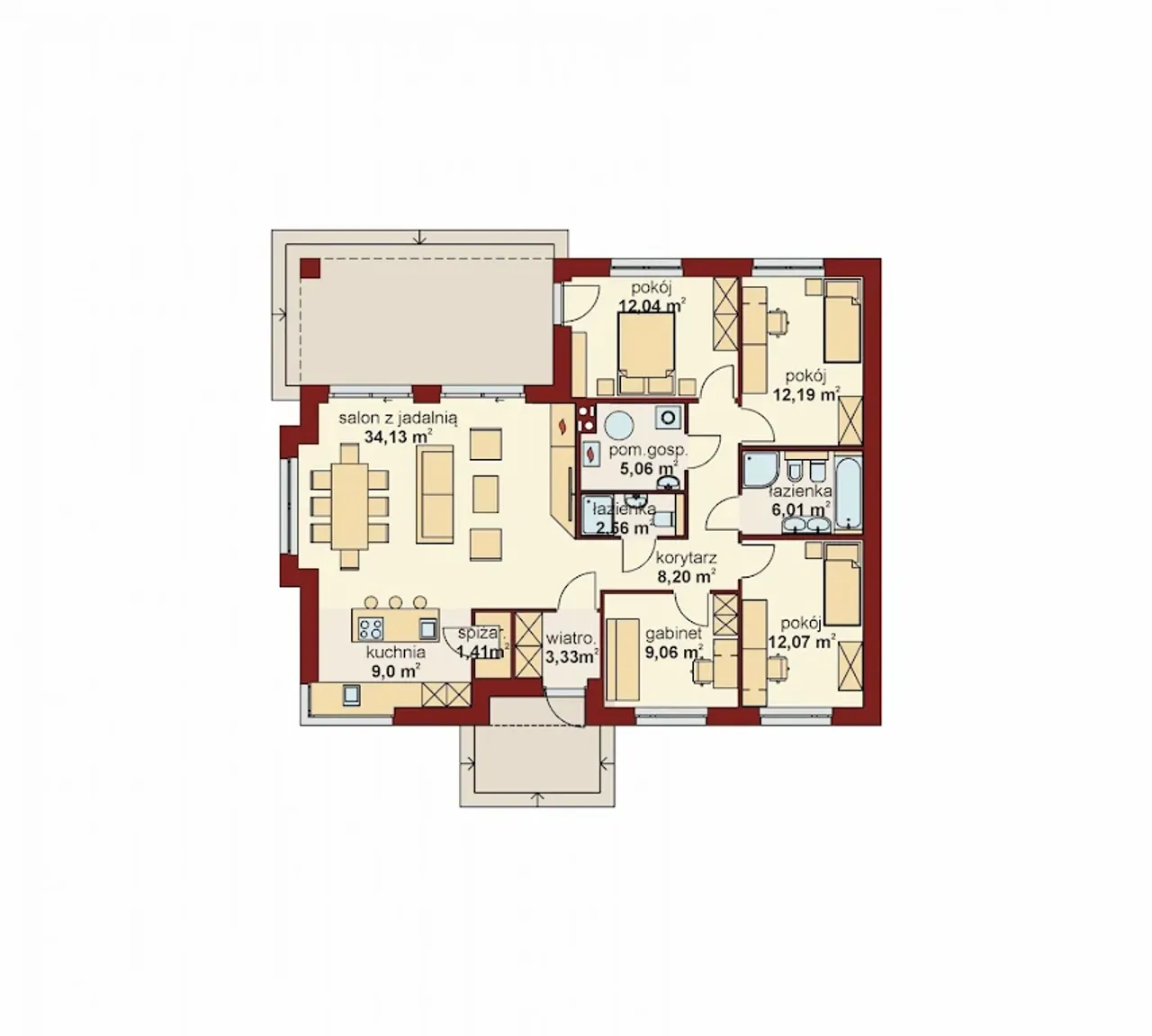 - Pokrycie dachu: blachodachówka lub dachówka cementowa.