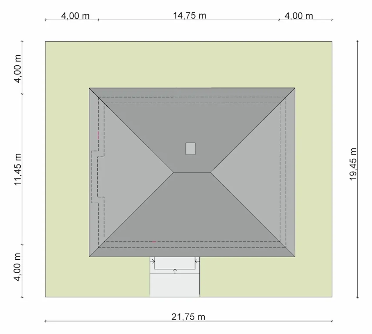 | Szerokość działki 21.75 m |